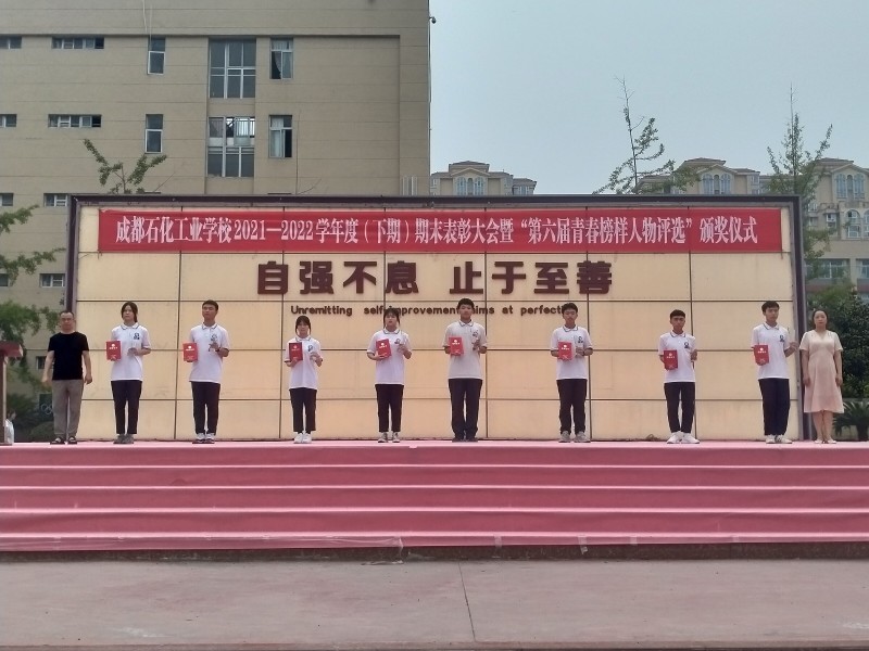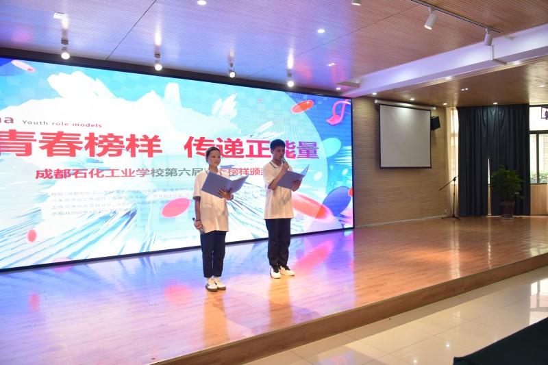 此次颁奖典礼,营造了崇尚榜样、学习榜样、争做榜样的浓厚氛围,展现了石化学子昂扬向上、积极进取的时代风采。“青春榜样人物”评选活动走过六载春华秋实,表彰了一批又一批作风优良、成绩突出的优秀青年:他们关爱同学,热爱集体,挑战自我,追求卓越;他们坚信技术改变人生,技能实现梦想;他们用平凡的言行向我们诠释着新时代青年的使命与担当。成都石化工业学校坚持高擎学校高质量发展大旗,以先进为榜样,明德修身,知行合一,仰望初心,脚踏实地,汇聚奋进新征程,建功新时代的磅礴力量,用实际行动迎接党的二十大胜利召开。
