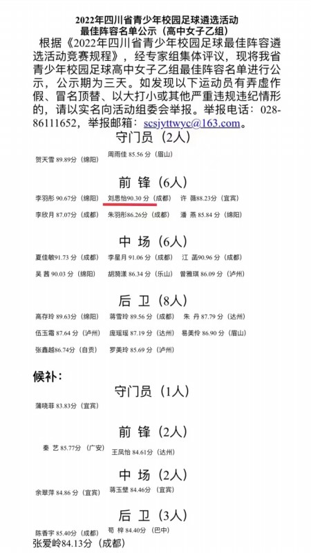 跑出青春的梦想,让梦想在绿茵场上热血沸腾!在刚刚结束的2022年四川省青少年校园足球最佳阵容遴选赛中,成都石化工业学校2021级建筑工程施工专业1班学生刘思怡入选四川省青少年校园足球高中女子乙组最佳阵容!