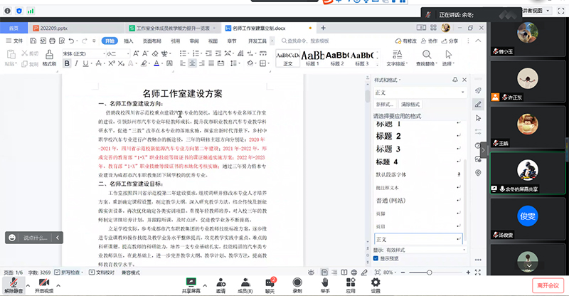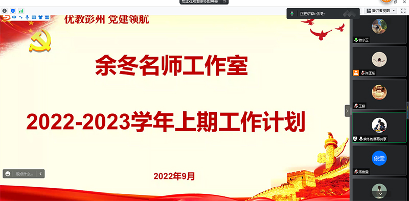 2022年9月21日上午,受疫情影响,余冬名师工作室全体成员通过线上会议的方式,开展了2022-2023学年上期工作室计划内容讨论。讨论会由余冬名师工作室领衔人余冬主持。