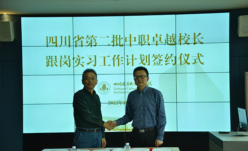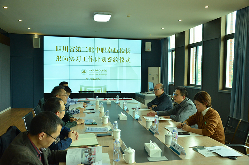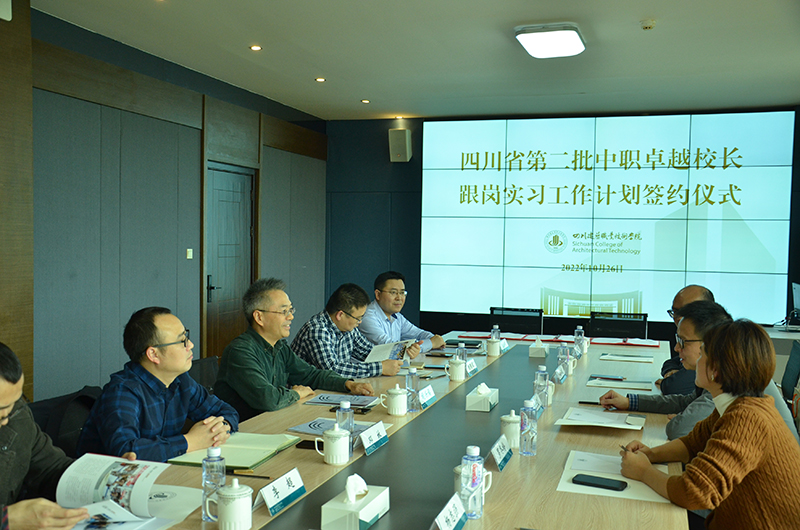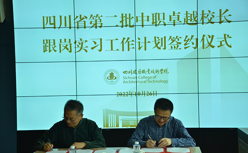 10月26日下午14时,“四川省第二批中职卓越校长”跟岗实习工作计划签约仪式在四川建筑职业技术学院举行。跟岗实习导师、四川建筑职业技术学院党委副书记、院长胡兴福与四川省中职卓越校长班学员、成都石化工业学校党委书记、校长周川益及两校相关职能部门负责人参加仪式。