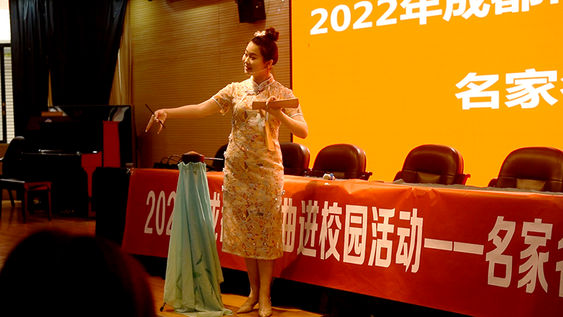 严西秀从事艺术工作六十余年,在赏析中严西秀从艺术源于生活、艺术作品的传承和发扬、文化自信展开讲解,表演艺术家跟随严老师的讲解为师生们带来了金钱板、四川清音表演,精彩的节目赢得了师生的阵阵掌声,师生们纷纷赞叹金钱板、四川清音所展现出的独特韵味和魅力。