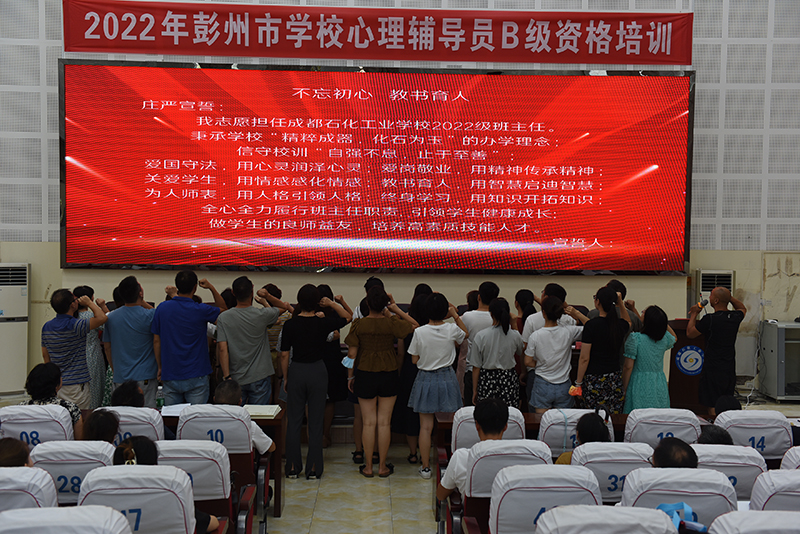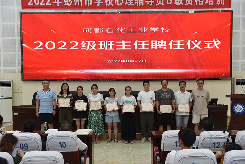 为明确班主任工作的使命感,本次培训特举行了2022级班主任聘任仪式,各专业科科长为新任班主任颁发聘书,全体新任班主任们以饱满的热情和高亢的精神庄严宣誓:我志愿担任成都石化工业学校2022级班主任......