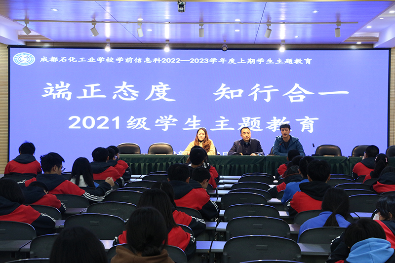 11月10日,成都石化工业学校学前信息科召开“端正态度,知行合一”2021级学生主题教育大会,该科2021级全体学生参加会议。