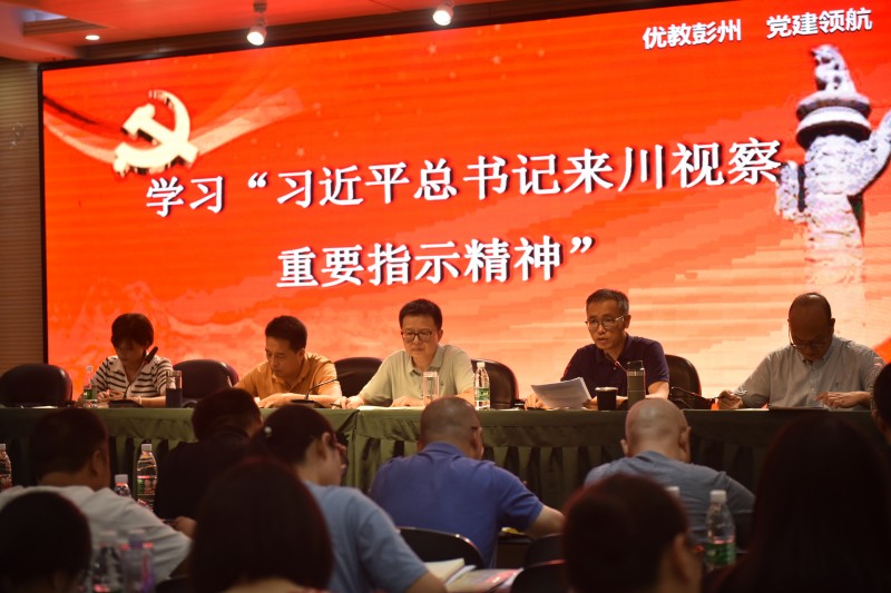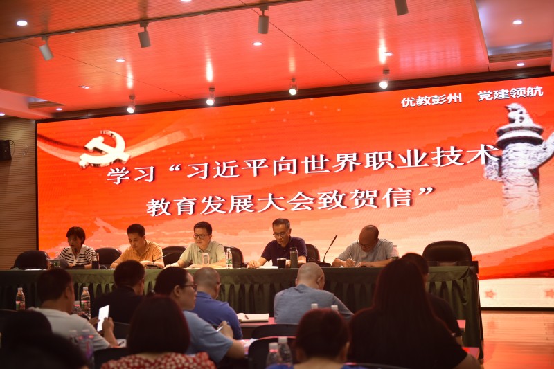 会上全体教职工共同学习了“习近平向世界职业技术教育发展大会致贺信”、“习近平总书记来川视察重要指示精神”“四川省第十二次党代会精神”和《新时代中小学教师职业行为十准则》等内容。学校党委书记、校长周川益随后传达了市教育局调整学校行政班子的文件精神,介绍了学校行政班子的分工情况,表达了对退出实职行政干部的感谢,并勉励他们继续为学校的发展建言献策。