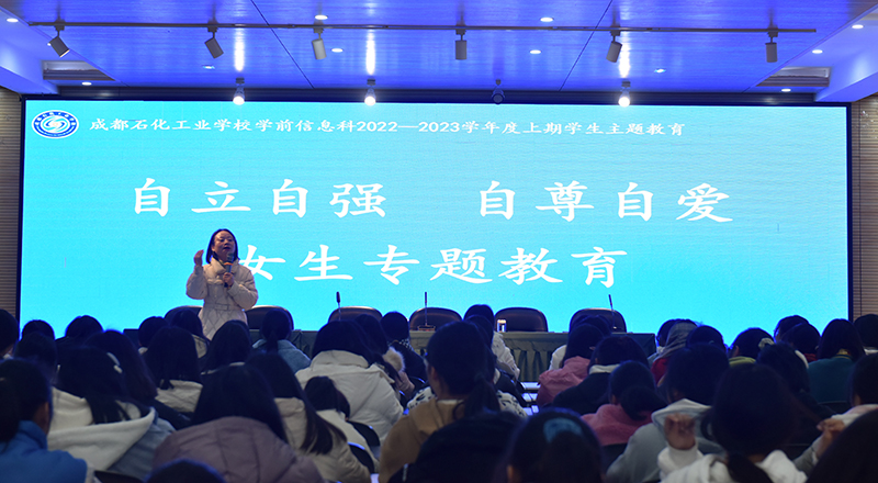 12月1日,我校学前信息科组织该科2022级全体女生在多功能厅开展了“自立自强?自尊自爱”专题教育讲座。该讲座由四川省班主任技能大赛三等奖获得者、校十佳班主任刘银老师主讲。