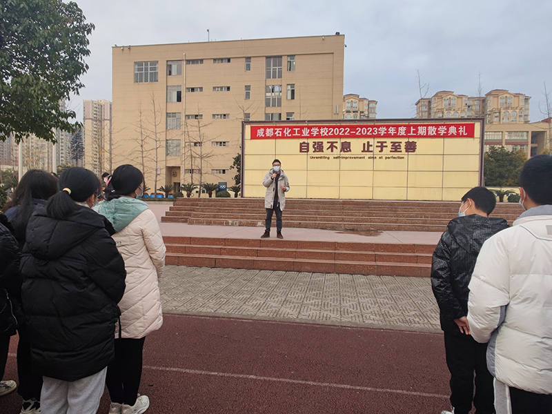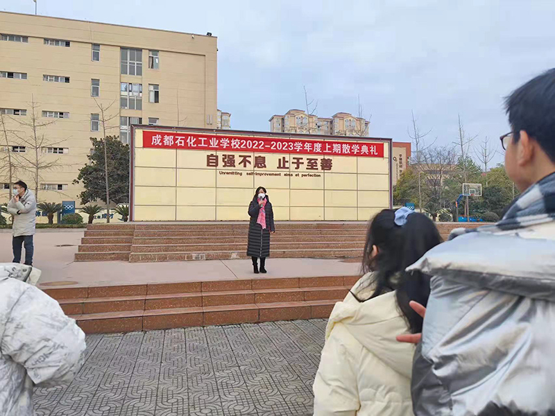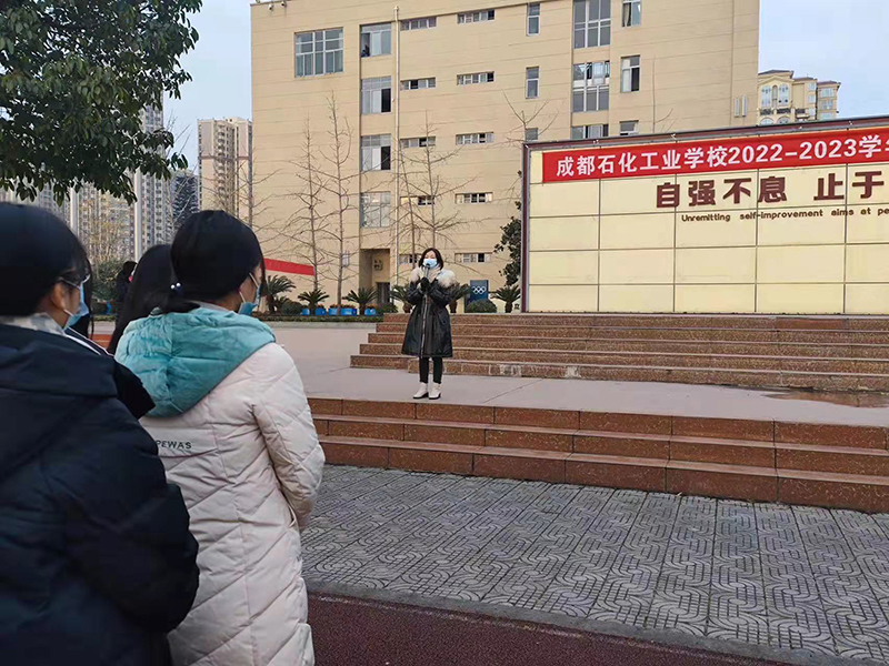 12月28日上午,成都石化工业学校汽服科全体师生在南校区升旗台前举行了2022-2023学年上期期末总结大会。大会对本学期的教育工作进行了总结回顾,并在学习和生活方面对同学们提出了具体要求。