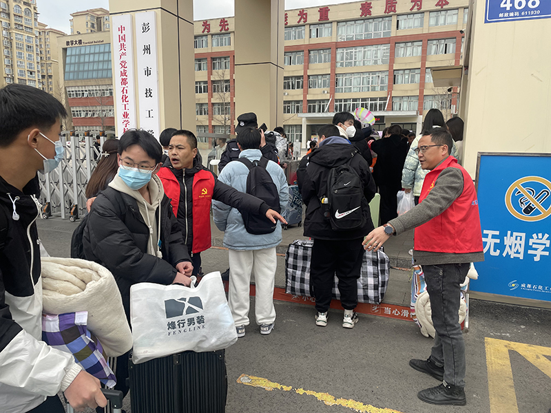 怀揣着新的期盼,怀揣着新的追求,我校学生于2023年2月13日返校,为保障春季开学返校工作平稳有序,学校党委组织各支部党员开展了“护航返校之路,共建平安校园”党员志愿服务活动,为同学们顺利返校保驾护航。