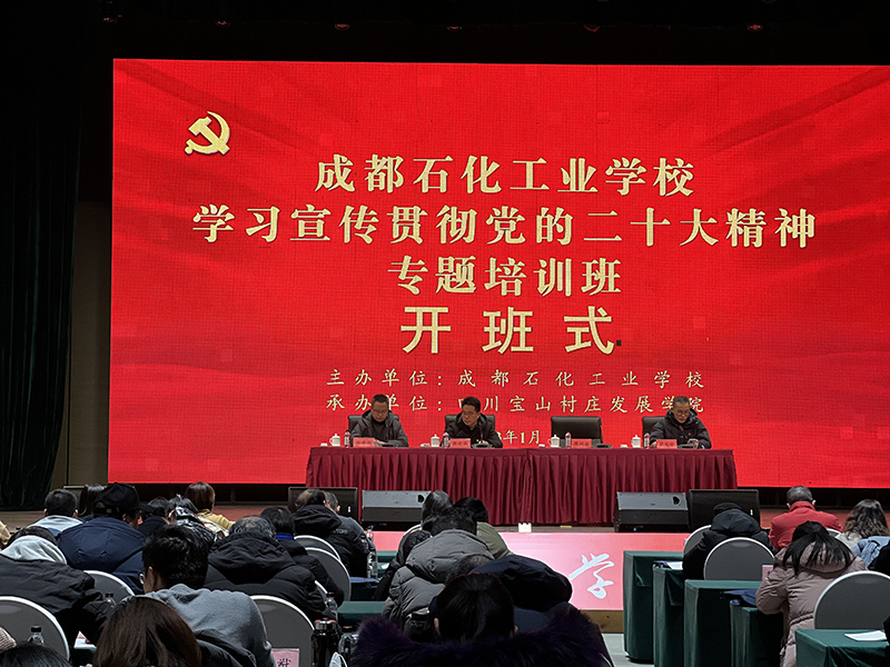 为深入学习贯彻党的二十大精神,2023年1月11日成都石化工业学校学习宣传贯彻党的二十大精神专题培训班在四川宝山村庄发展学院由党委委员、副校长黎定成宣布开班。