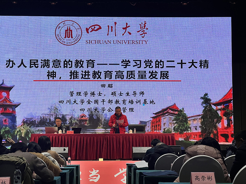 培训班上,成都市委党校邵军教授以史为鉴,要求学员们把党的历史学习好、总结好,把党的宝贵经验传承好、发扬好;田绍主任结合党的二十大报告向老师们进一步阐释怎样才能办好人民满意的教育,什么是面向未来的教育;陈运副教授将廉政警示教育融入一个个事例,进一步阐释新征程中国共产党的使命任务,深刻指出在现代化新征程的关键时刻,需要统一思想,开拓创新推进中国式现代化,在新思想指引下开创新局面。