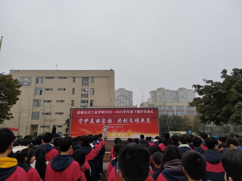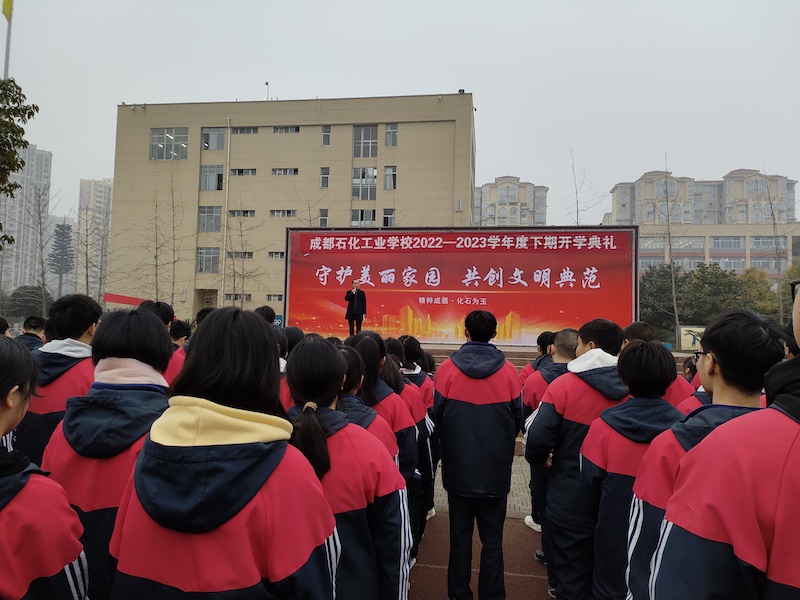 为做好学生新学期入学收心教育,全面推进学生言行规范养成教育,激发学生的学习热情,2月17日上午,成都石化工业学校综合科在南校区旗台前举行了“修身律己,厚德尚能”的学生主题教育大会。