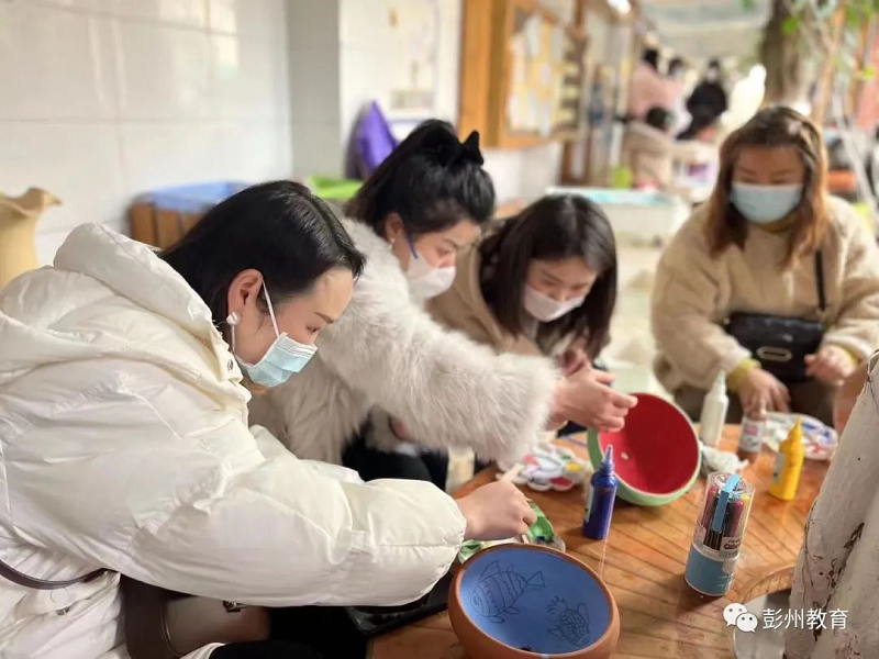 家长们通过动手操作游戏材料,了解了幼儿是如何在“玩中学、学中玩”。