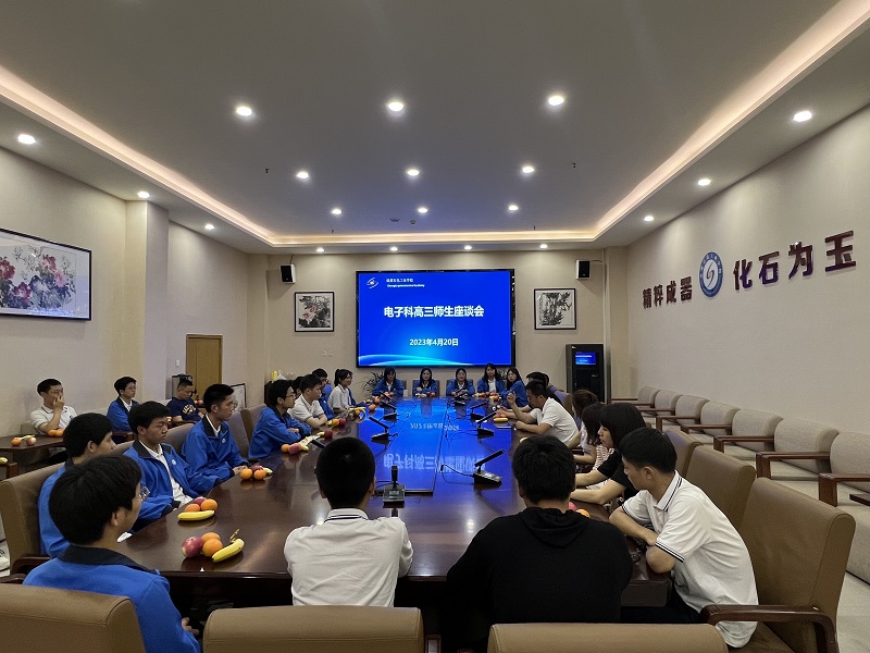 为进一步了解高三学生学习情况,有效提振高三师生备战高考的士气,4月20日中午,成都石化工业学校电子科在南校区第四会议室召开了高三师生座谈会。该专业科科长黄尹翔、该班科任教师及专业科相关同志和2020级电子1班全体学生参加了座谈。