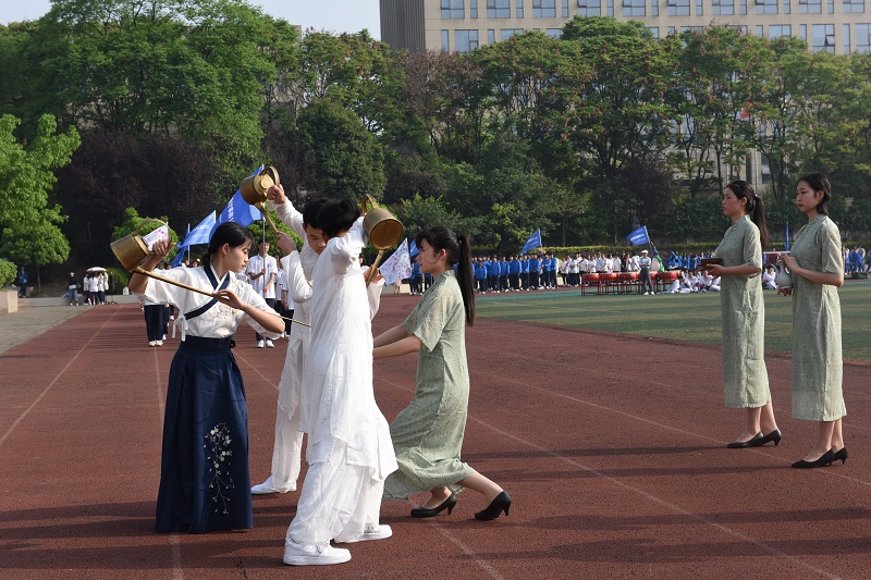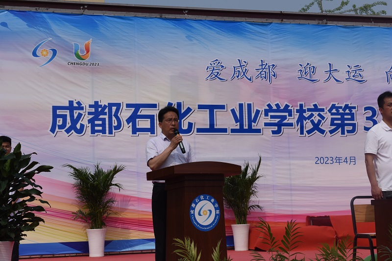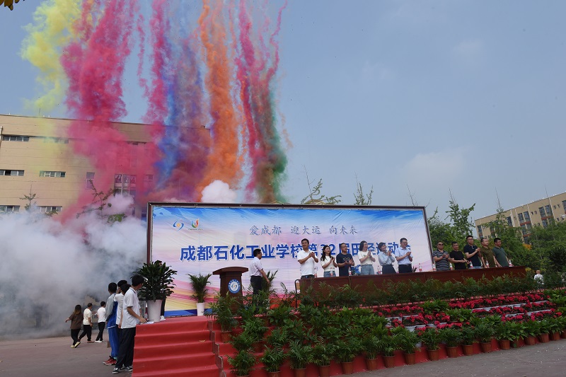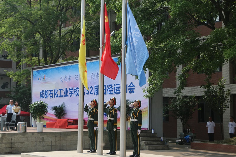 4月19日上午,成都石化工业学校第三十二届田径运动会开幕式分别在南、北校区运动场同步拉开序幕。