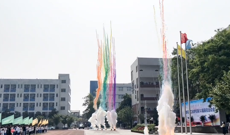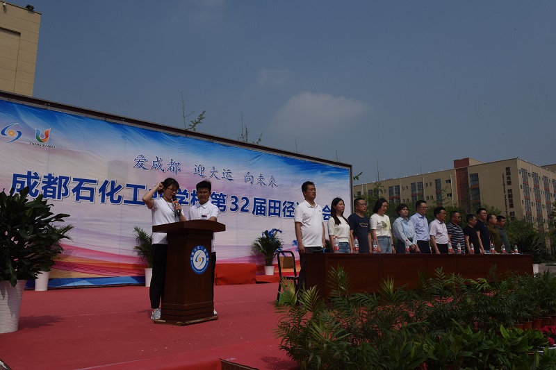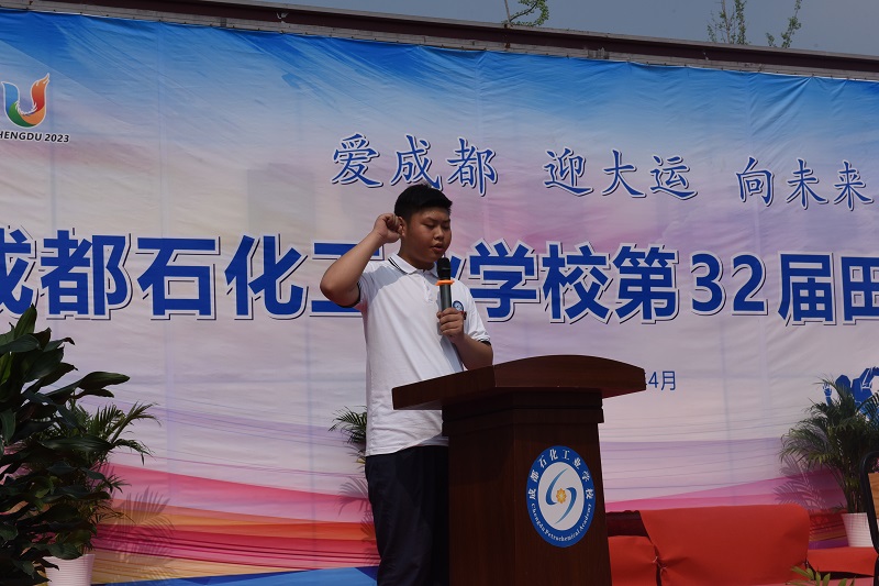 在裁判员代表和运动员代表宣誓后,党委委员、副校长黎定成,党委委员、副校长罗光宇分别在南、北校区会场宣布:成都石化工业学校第三十二届田径运动会正式开幕。彩烟喷起,掌声雷鸣,欢呼声、呐喊声响彻校园。