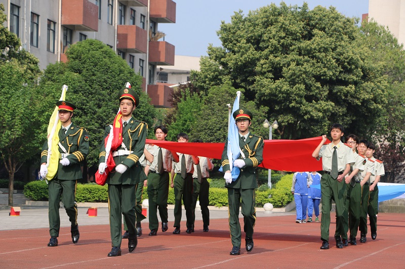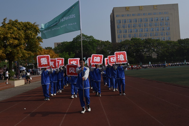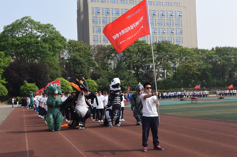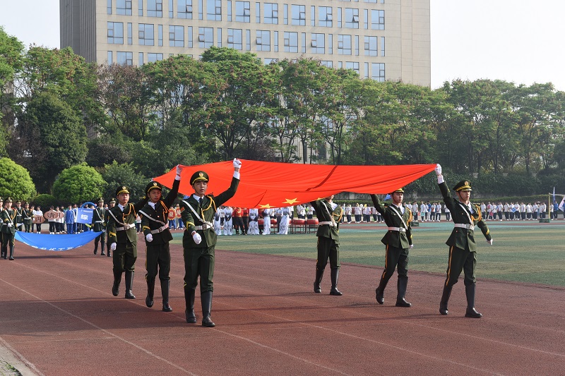 伴随着响亮的运动员进行曲,护旗手托举着国旗、校旗和会旗齐步走过主席台,预示着开幕式入场式正式开始!