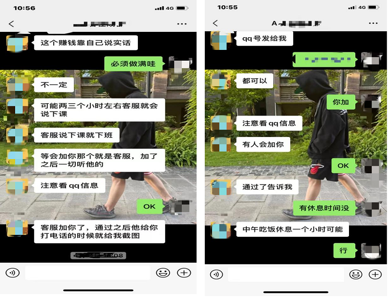 周末,我偷拿上妈妈的手机来到校外约定好的奶茶店和阿亮等人汇合,阿亮告诫我们不要说话,然后用我的手机与那个QQ用户进行语音通话并开了手机扩音,俩人简单交流几句后,对方通过QQ发来一组电话号码,阿亮便开始“干活”了。