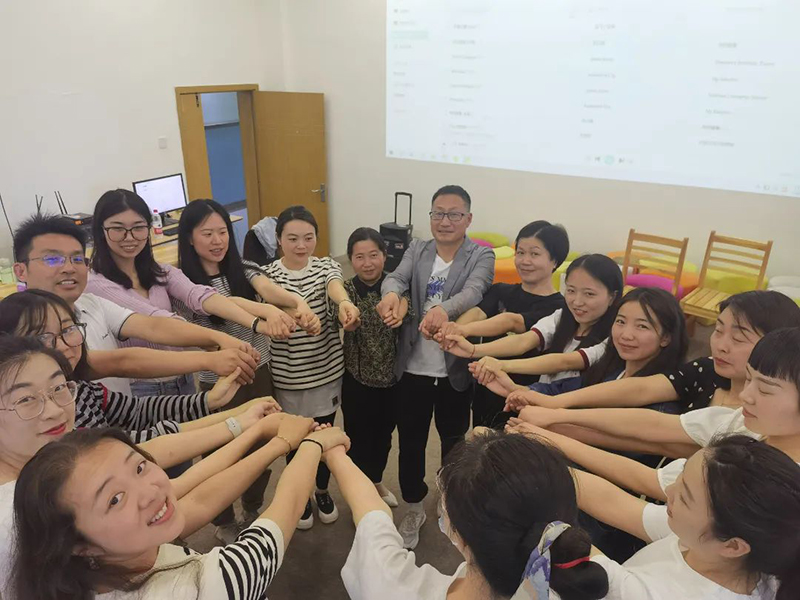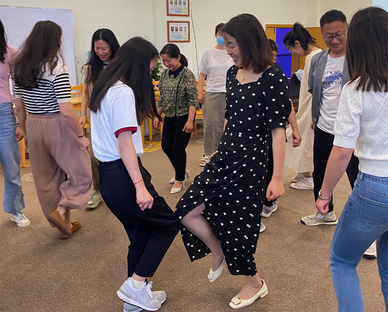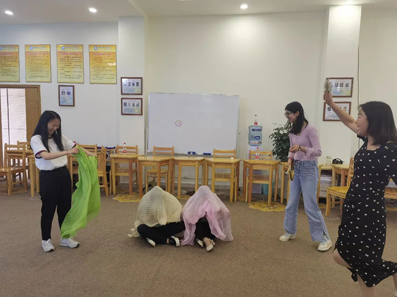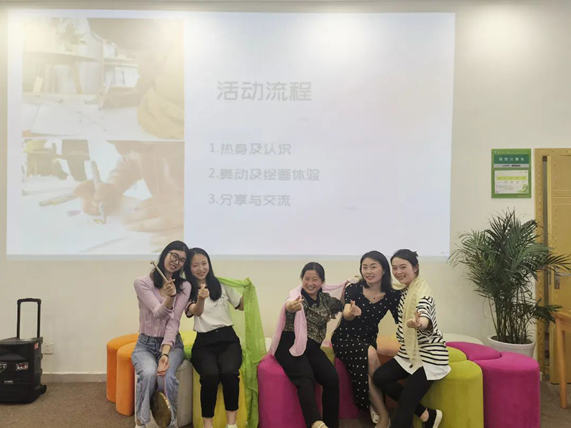 这次团辅活动将舞蹈、戏剧、绘画等艺术元素融入在团体辅导中,老师们热情地参与,激情释放,有了天马行空的别样体验。“身体打找招呼”、“给自己取名字”、“三句半”、“O卡剧情表演”等活动让老师们自由的想象、激情的表达,以绘画的方式分享感受与收获。