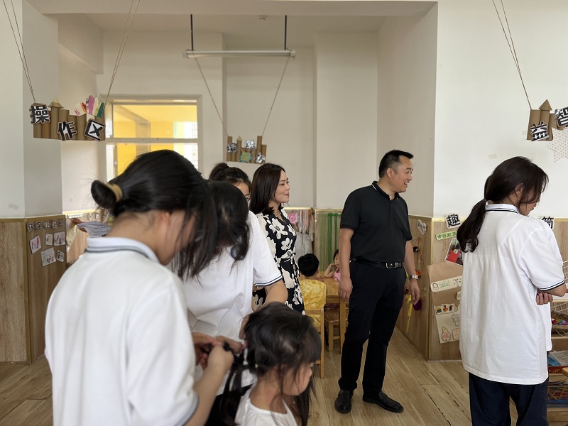 在隆丰幼儿园业务园长吴雪的带领下,杨志强一行首先参观了幼儿园园所环境和特色,详细了解幼儿园的育人目标和保育人才需求情况;随后观看并指导实习学生工作,督促学生积极参与一日活动各环节的保育工作;最后就如何进一步优化校企合作进行了探讨,双方就幼儿园人才需求、课题合作、环境创设的布置等提出新的思路,对进一步加强双方合作互动进行了可行性探讨。