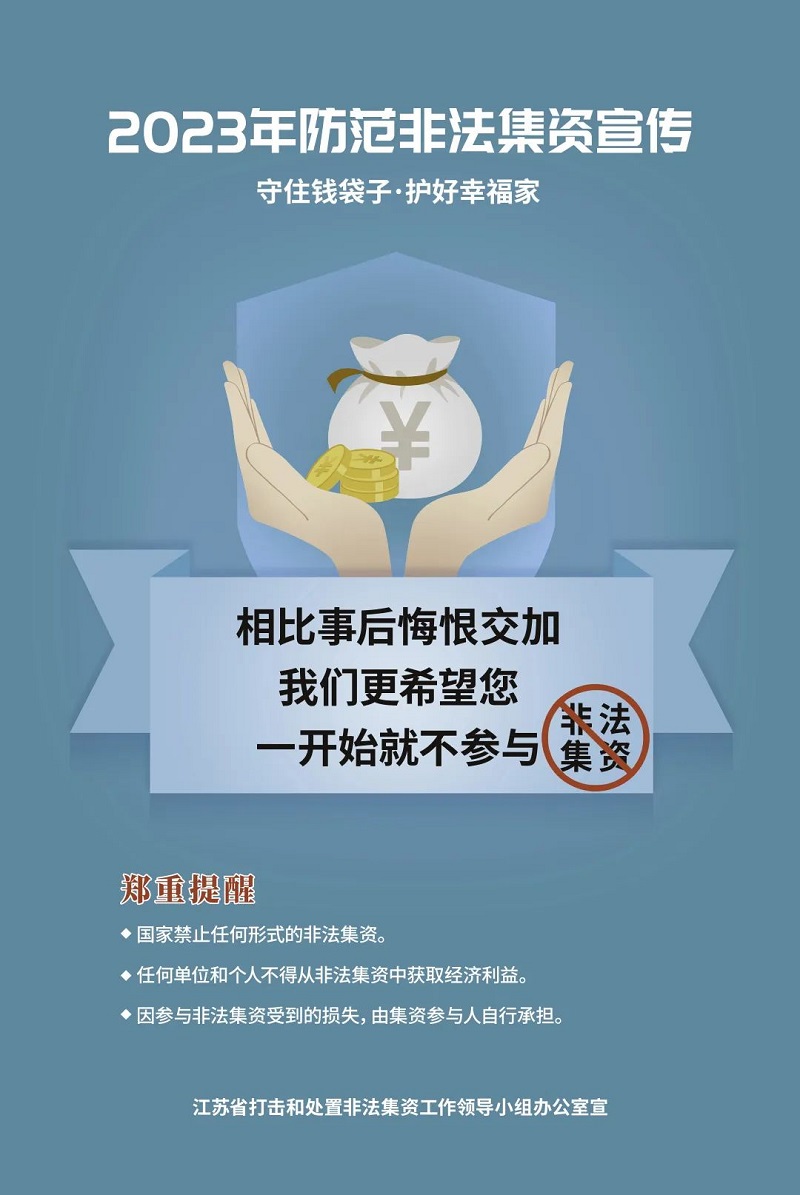 遇到相关投资集资类宣传,一定要防止头脑发热,先征求家人的意见,过一夜再决定。不要盲目相信造势宣传、熟人介绍、专家推荐,不要被高利诱惑盲目投资。