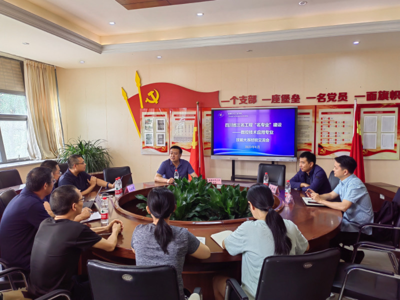 会议开始前,与会人员一行到机械实训基地进行实地参观,成都汽车职业技术学校数控实训中心郭金鹏主任向实训学生现场指导数控车削加工操作。随后,大家在二楼会议室展开了交流与讨论,首先由机械科科长向与会人员对我科数控技术应用“名专业”建设情况进行介绍,希望各位专家结合我专业建设情况在设备设施采买、师生参与技能竞赛训练方案、专业升级和数字化改造等方面提出指导性意见和建议。会中,与会专家针对该专业目前建设情况进行客观综合评审,同时针对三名工程“名专业”建设的重点、难点问题提出指导性建议。论证专家指出该专业建设要紧紧围绕着专业目标定位、人才培养质量,结合专业实际情况,对标行业新需求,对口升学、技能大赛成绩提升,找准专业建设的瓶颈和建设的方向,多措并举加强专业内涵建设和外延拓展,构建专业建设保障体系,建立同辈院校及与高职院校间的联动机制,以点带面,提高“名专业”建设质量与成效。