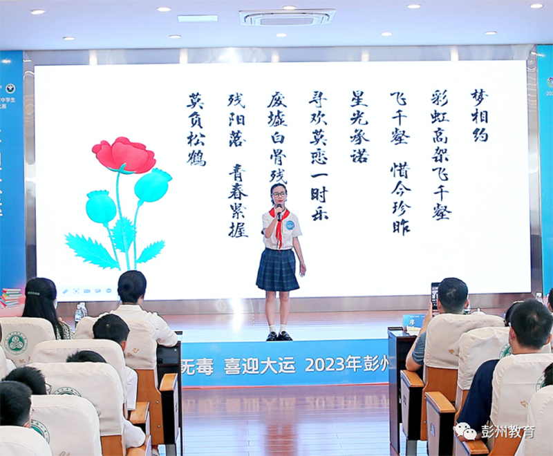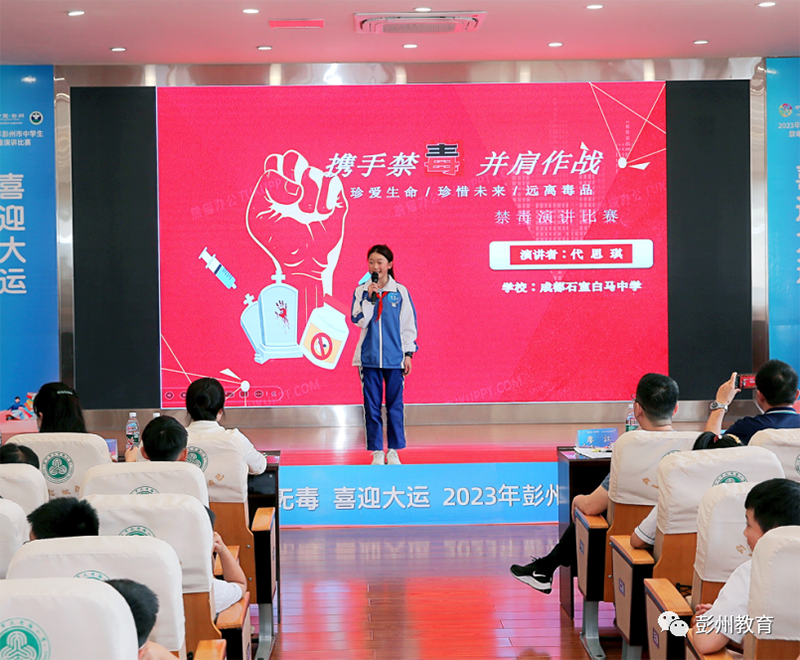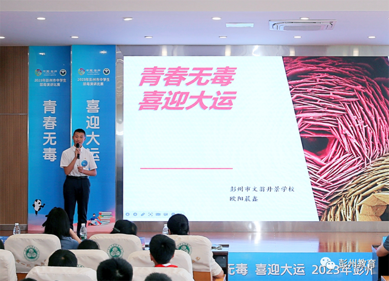 ● 在市禁毒办指导下,组织开展“青春无毒 喜迎大运”彭州市中学生禁毒演讲比赛。6月5日,在区片赛中脱颖而出的14位同学在彭州市天府路小学参加决赛,开展禁毒教育主题活动。