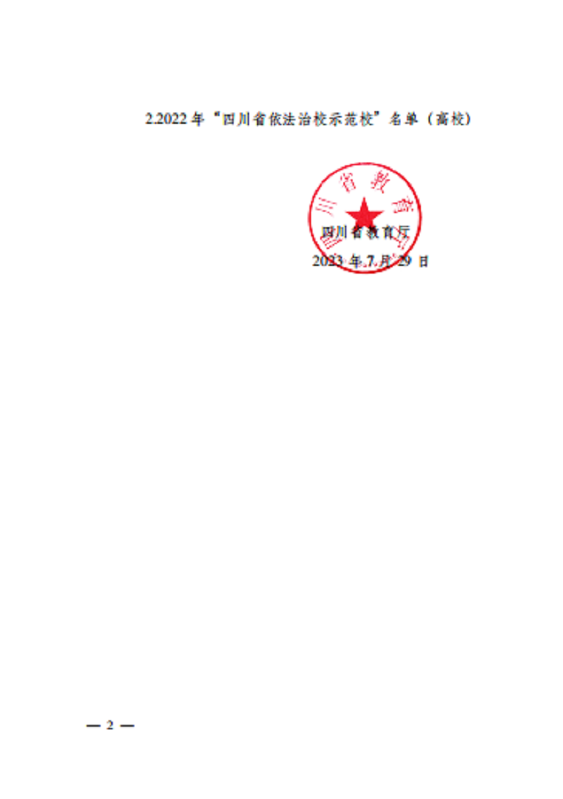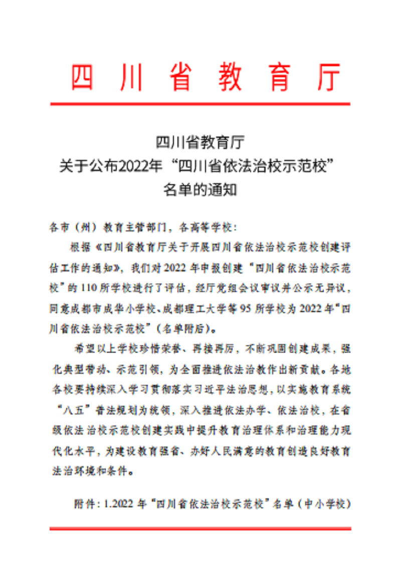 2023年7月29日,四川省教育厅公布了2022年“四川省依法治校示范?!泵ィ啥际ひ笛9馊偕习瘛?/p>