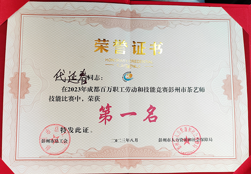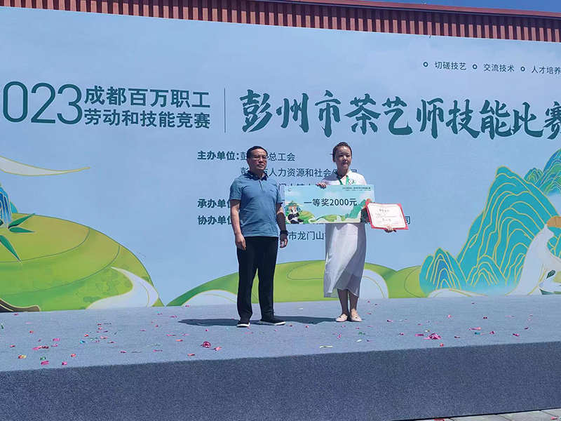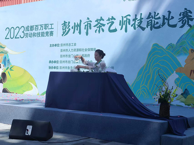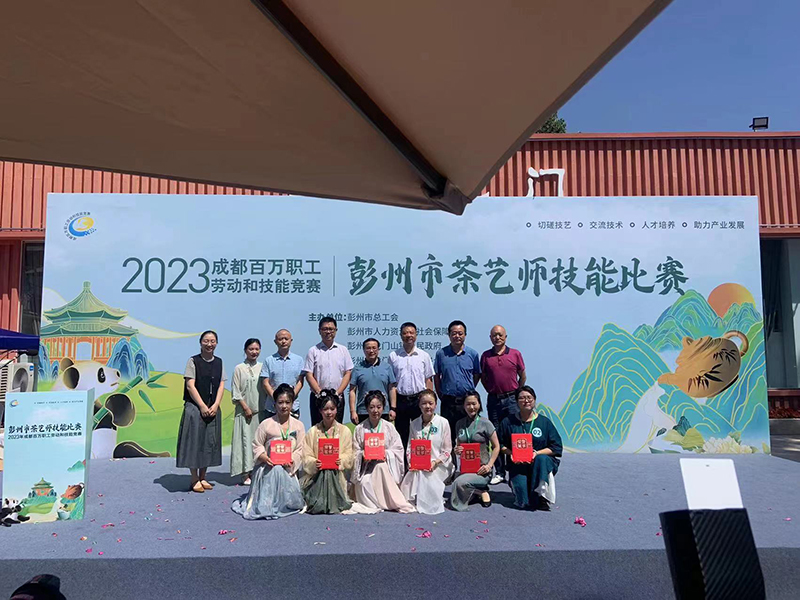 8月22日,由彭州市总工会、彭州市人力资源和社会保障局主办,龙门山镇人民政府、彭州市龙门山镇工会联合会承办的“2023年成都百万职工劳动和技能竞赛彭州市茶艺师技能比赛”在彭州市龙门酒肆广场举行,成都石化工业学校代延春老师荣获第一名。