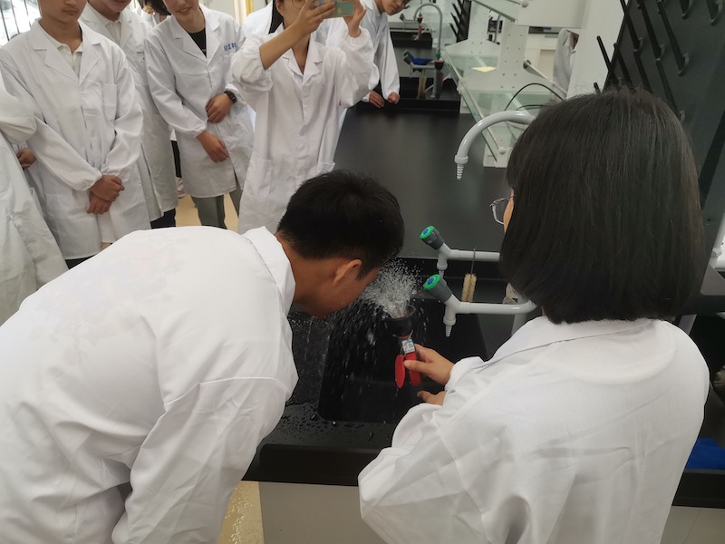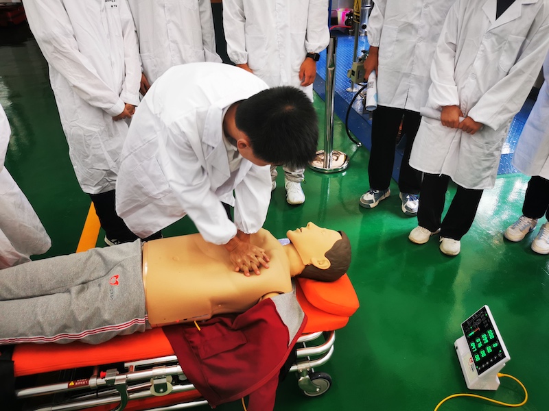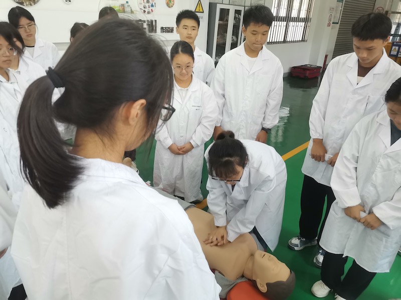 活动中,该专业科师生认真参加了“消防灭火”“心肺复苏”“危化品泄漏应急疏散”“正压式空气呼吸器使用”“实训室酒精着火”及“碱液溅入眼睛”等实训室安全事故情境应急模拟演练。