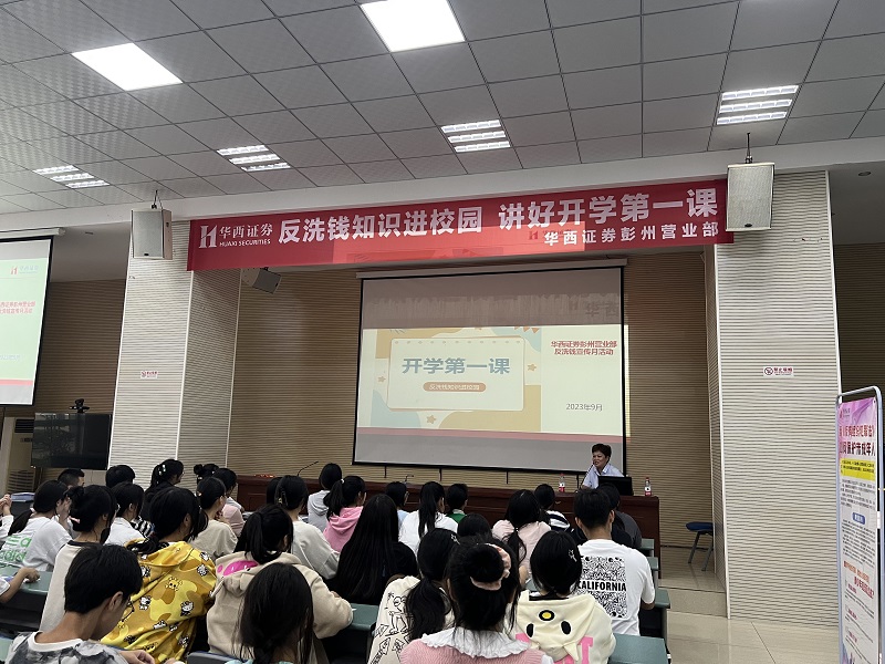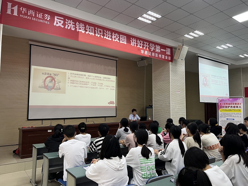 9月20日下午,成都石化工业学校综合科联合华西证券彭州营业部开展了以“反洗钱知识进校园,讲好开学第一课”为主题的反洗钱知识进校园活动。