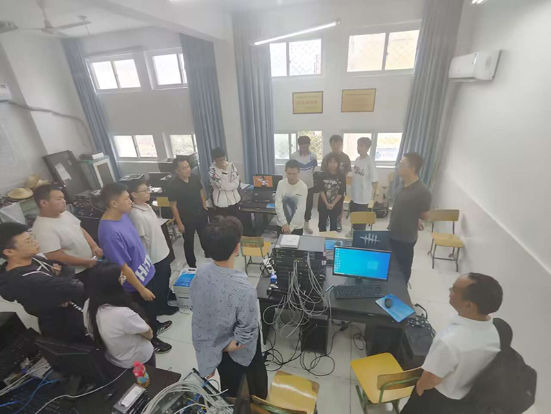 交流活动中,三校计算机专业负责人就计算机专业教学管理、专业建设、课程改革等领域进入了深入的探讨。三校学生模拟计算机网络建设与运维省赛环境进行了友谊赛。赛后,北京神州数码云科信息技术有限公司区域经理对交流赛进行了总结,同时针对学生提出的问题给出改进办法。