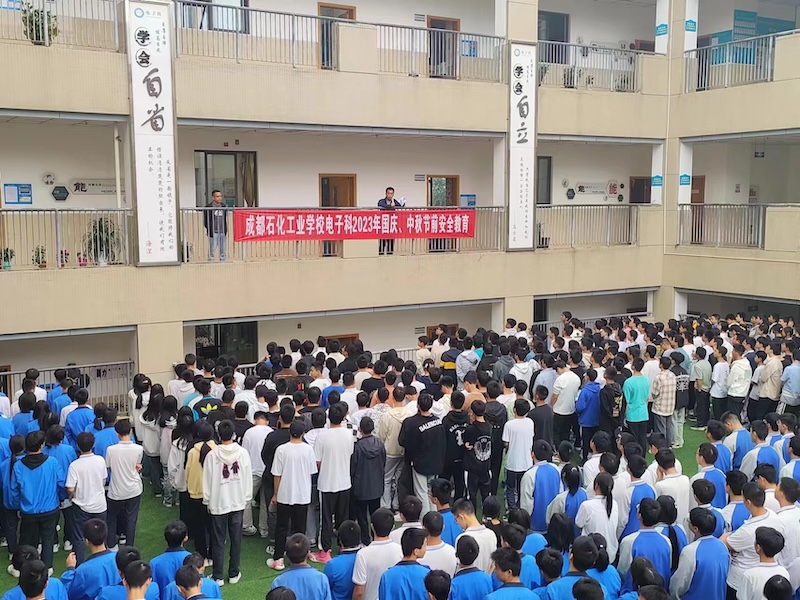 为让全校师生度过一个平安快乐的国庆、中秋小长假,9月28日,成都石化工业学校电子科开展了2023年国庆、中秋节前学生安全专题教育活动。