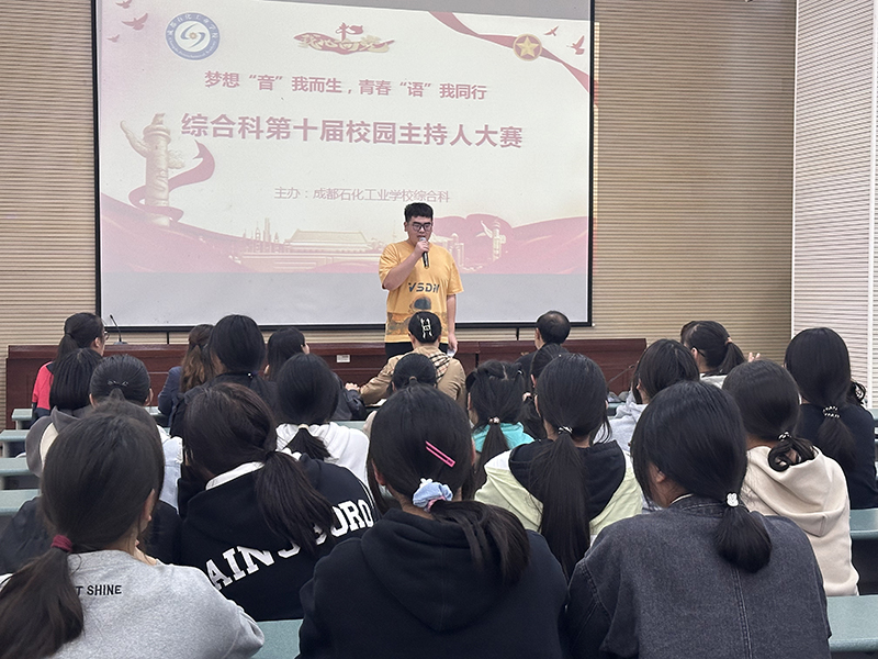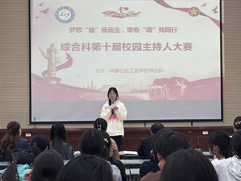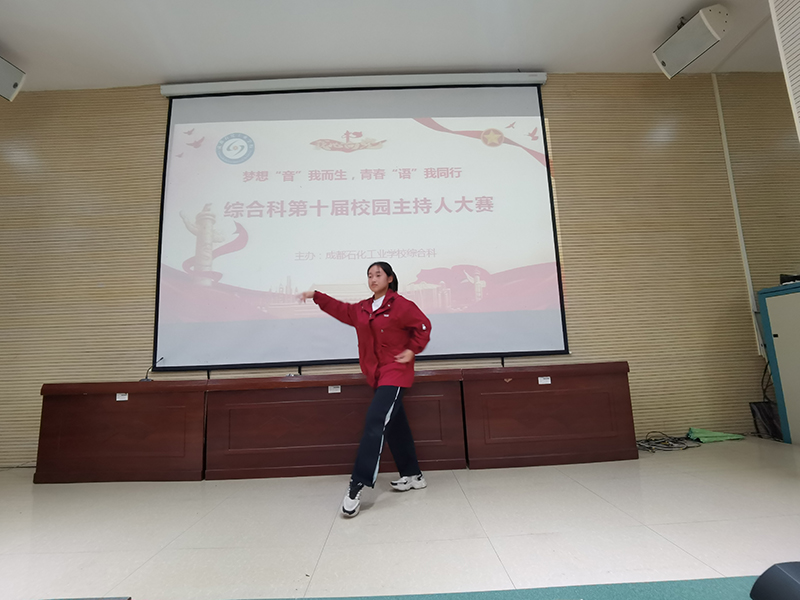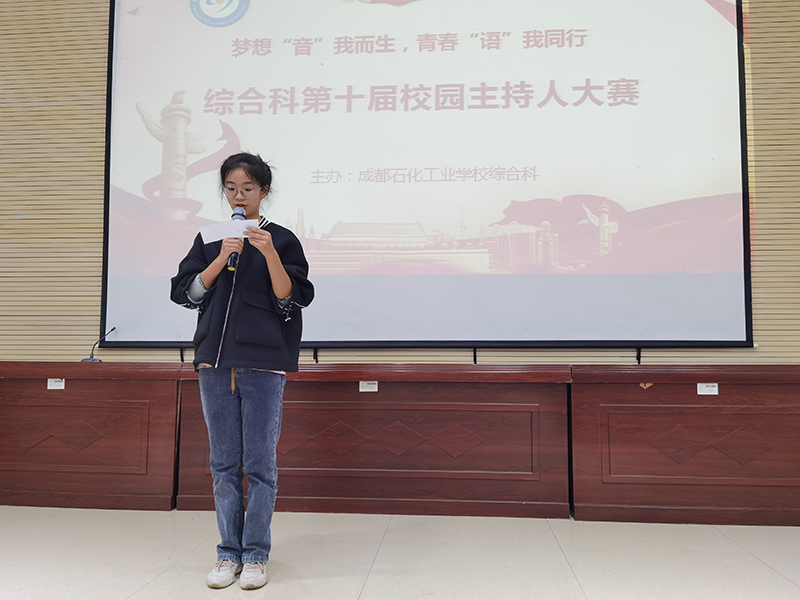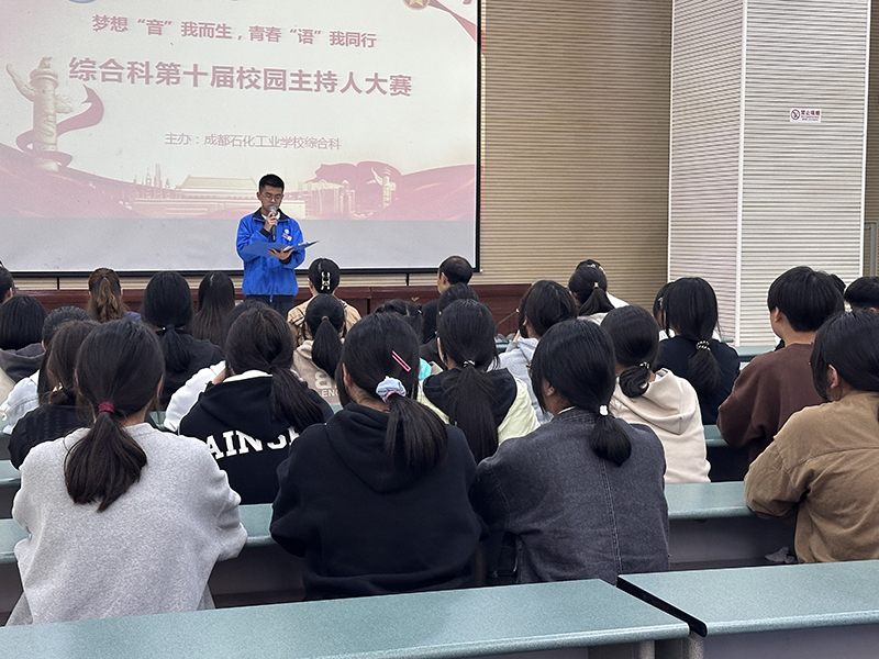 10月8日中午,成都石化工业学校综合科在南校区多功能厅成功举行了主题为“梦想‘音’我而生,青春‘语’我同行”的第十届校园主持人大赛初赛,该专业科三个专业的四十余名同学参加了比赛。