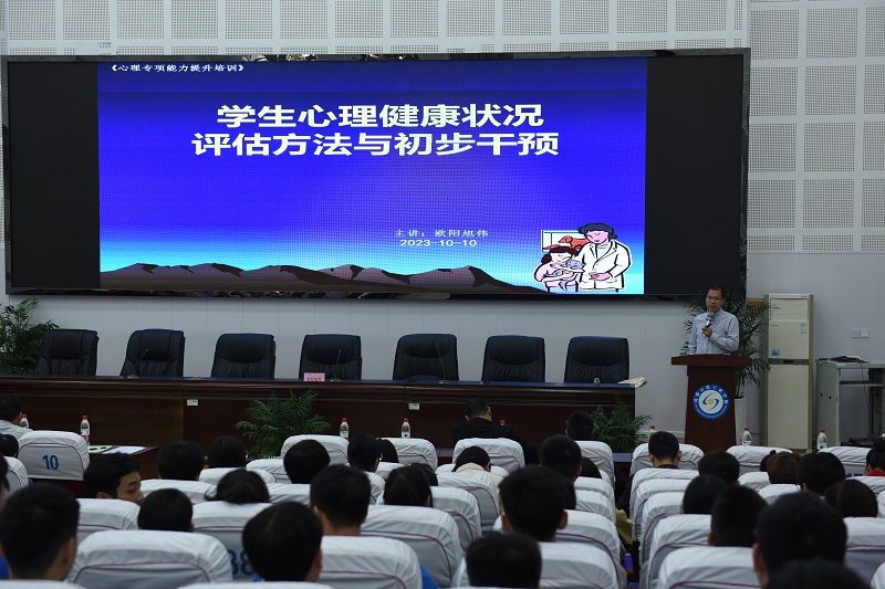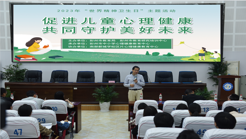 为呼吁全社会共同关注青少年心理健康,引导青少年正确应对生活压力,塑造健康心灵,10月10日,《学生心理健康状况评估方法及初步干预手段》专题讲座在成都石化工业学校举行,成都市第四人民医院(市精神卫生中心)心理测评中心创建者、首任测评中心主任欧阳旭伟老师受邀担任主讲。彭州市教育研究培训中心王涛斌主任、彭州市中小学心理健康教育中心、南部新城学校区片心理健康教育中心各成员学校班主任老师和学校心育委员参加了本次活动。