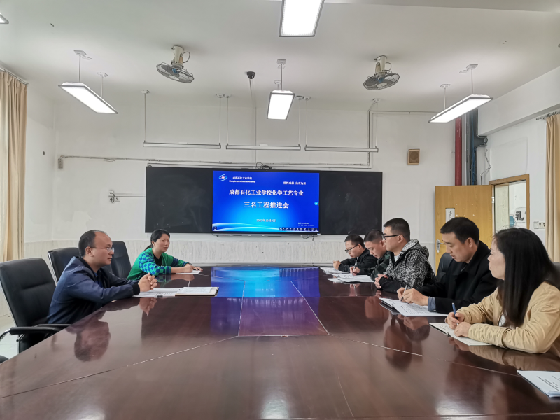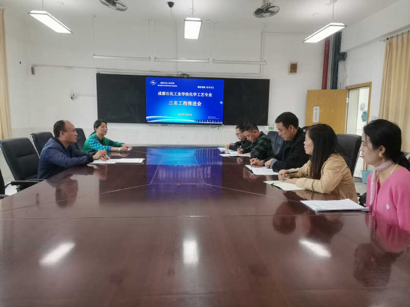 为加快推进三名工程化学工艺“名专业”“名实训基地”建设,10月8日,成都石化工业学校化工科召开了“三名工程”建设工作推进会,化工科科长、化学工艺专业建设项目组全体成员参加了会议。