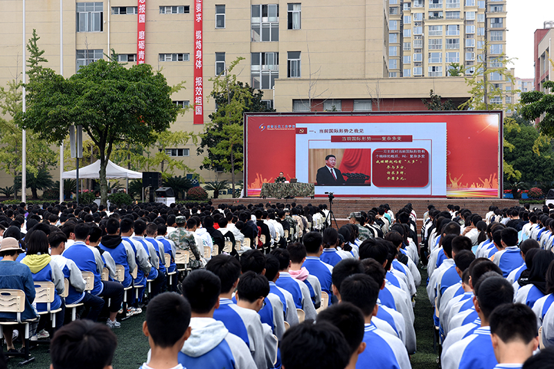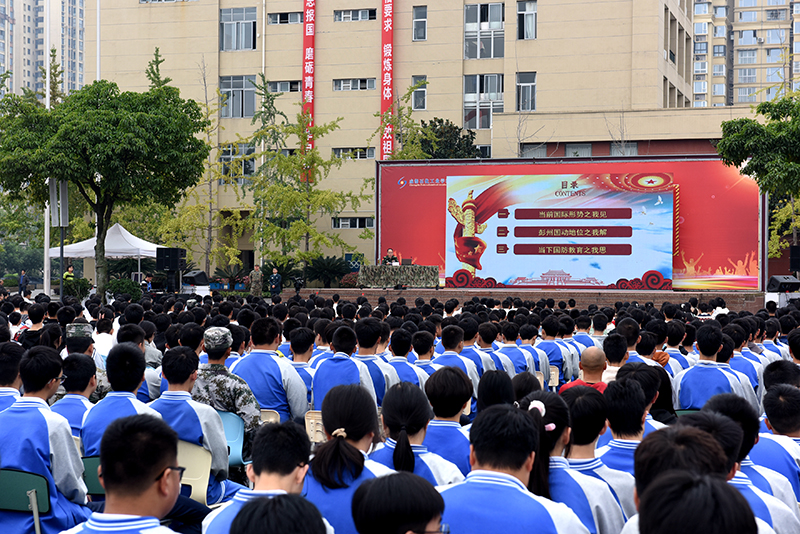 为进一步增强中职学生国防观念和忧患意识,凝聚关心国防、热爱国防、建设国防的思想共识,10月20日,成都石化工业学校邀请彭州市委常委、彭州市人民武装部上校政治委员雍光鹏同志到校为2022、2023级军训学生讲授了一堂生动的国防教育辅导课。