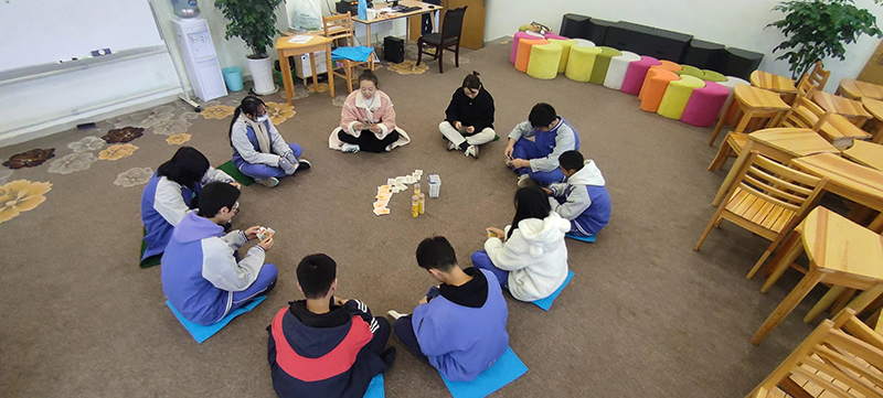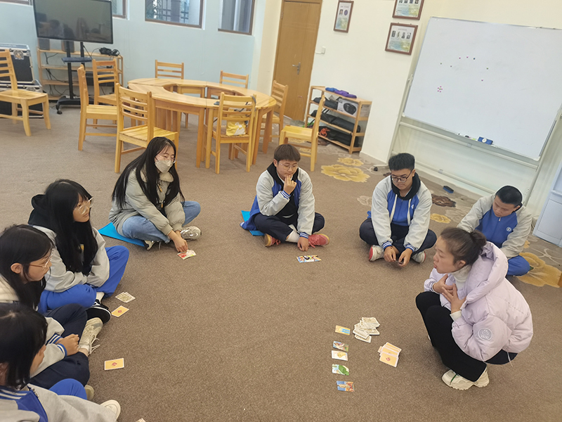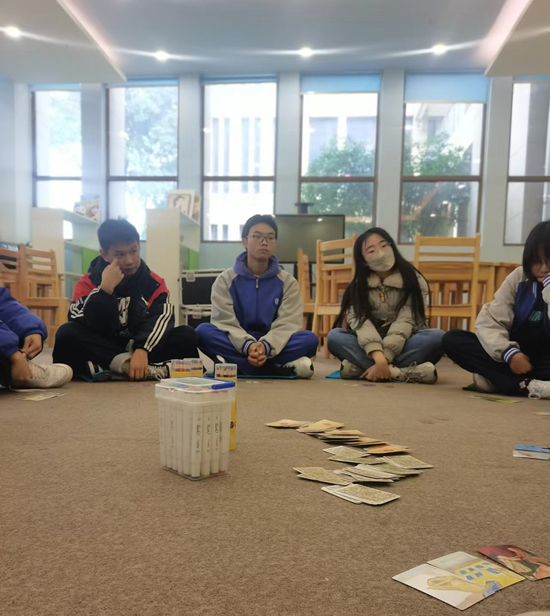 南校区的团体交流活动邀请到心理咨询师、舞动疗愈师沈晓昕老师和学校成长中心的葛娅、蒋梦妮老师一起带领学生们体验OH卡。OH卡是一种探索自我、启发创造力的工具。学生们通过抽卡、读卡、联想、分享四个步骤,建立了自己与OH卡的连接,寻找到了生活中的困境与资源。这一环节让学生们认识到,生活中遇到的困难并非孤立存在,而是可以借助周围资源与力量来解决的。促进心理健康提升主观幸福感。有利于学生心理健康成长。