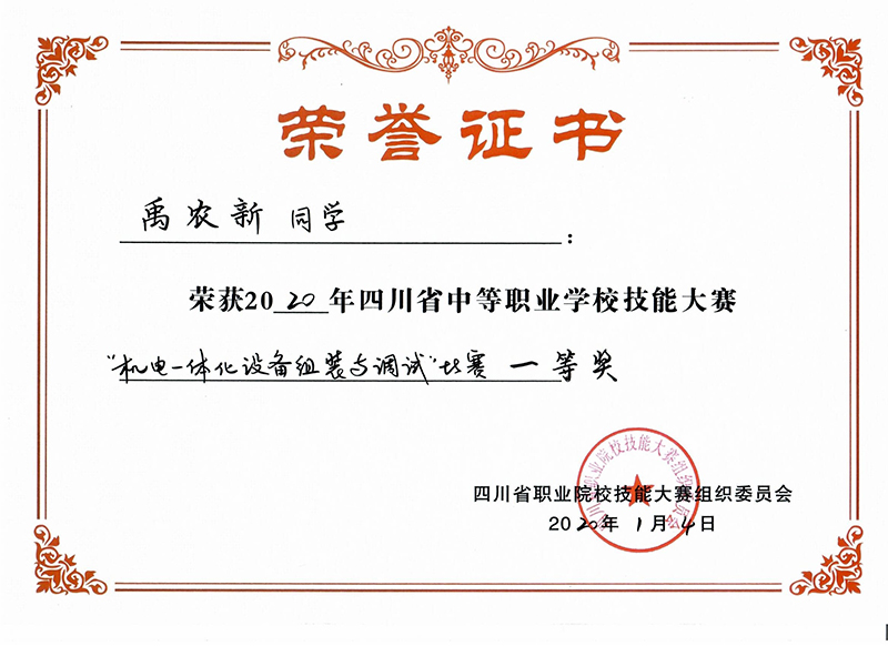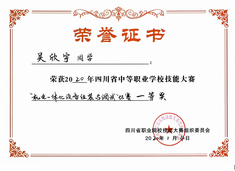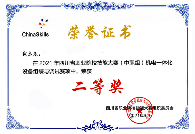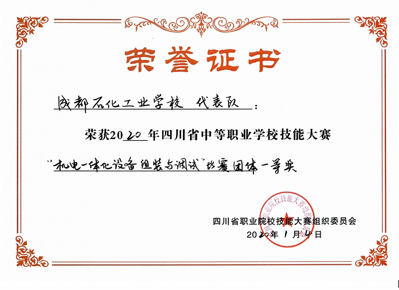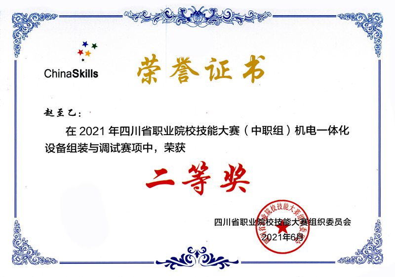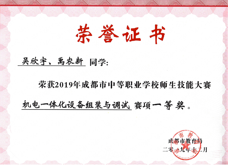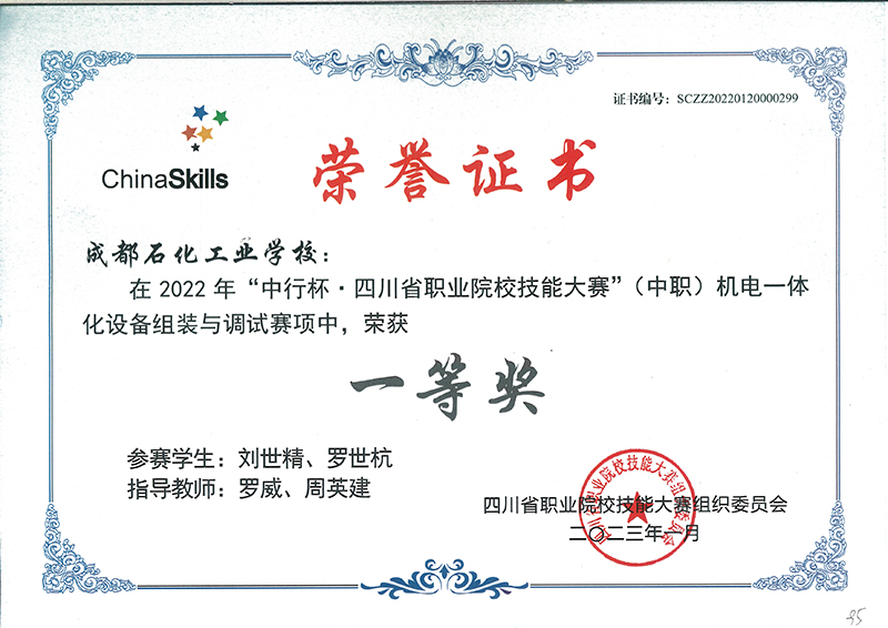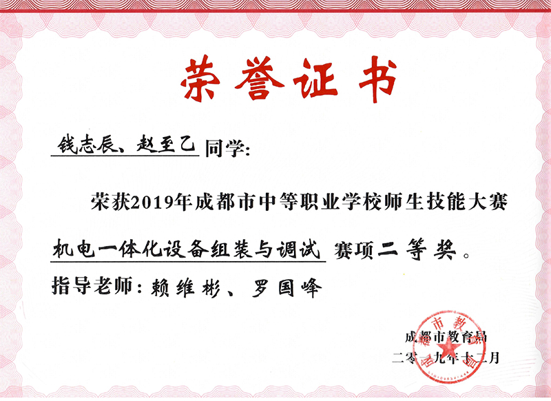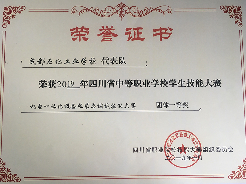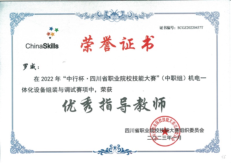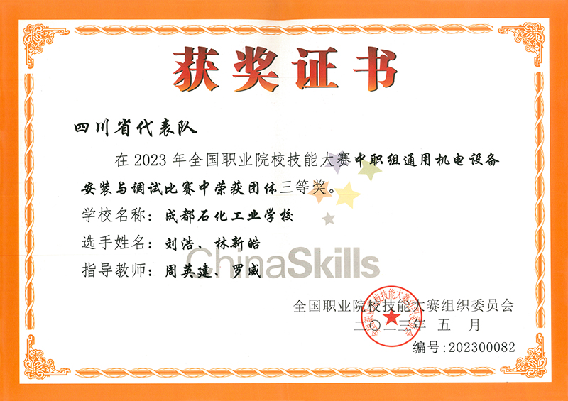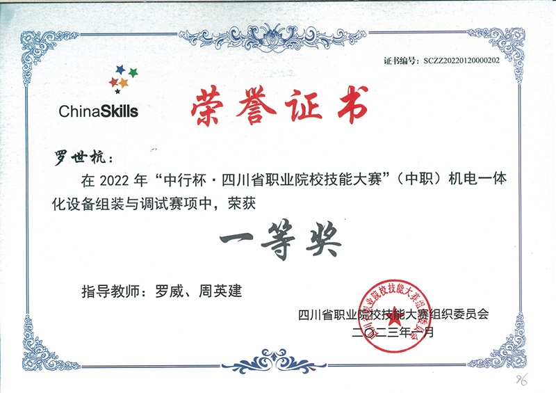 通用机电设备安装与调试赛项,2018年首次参加该赛项比赛至今,先后荣获全国二等奖1个,三等奖1个;四川省一等奖4个,二等奖1个;成都市一等奖3个,二等奖5个。周英建老师和罗威老师先后被评为四川省优秀指导教师4次,成都市优秀指导教师3次。