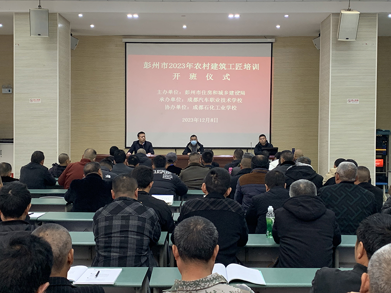 此次培训由彭州市住房和城乡建设局、成都汽车职业技术学校和成都石化工业学校联合主办,旨在提升农村建筑工匠的专业技能和知识水平,推动农村建设事业的可持续发展。