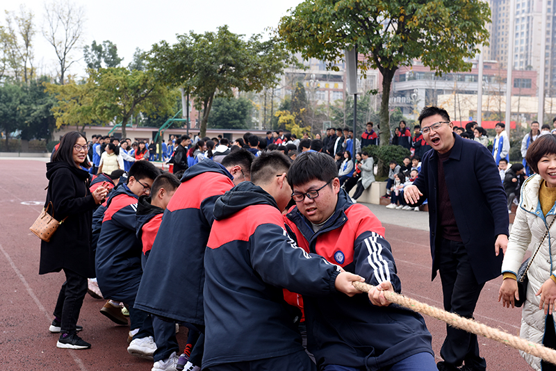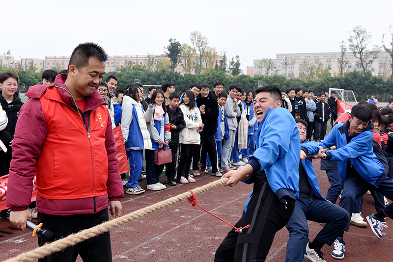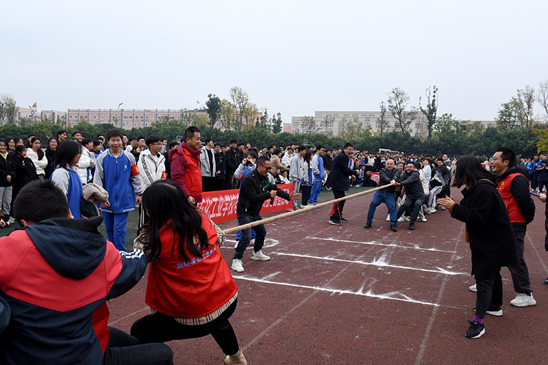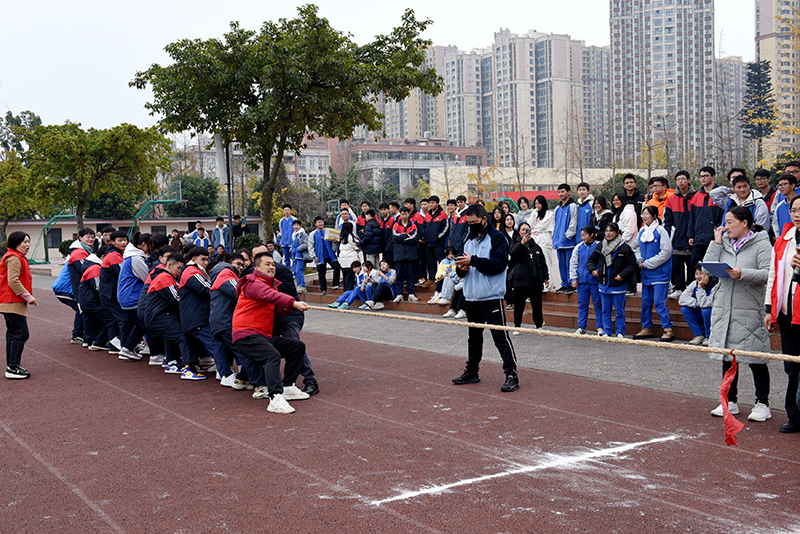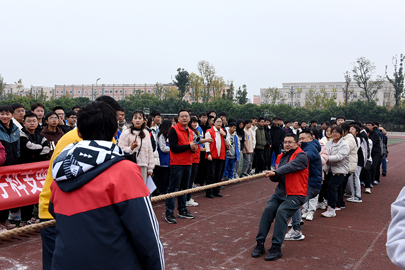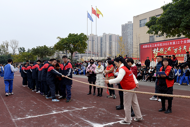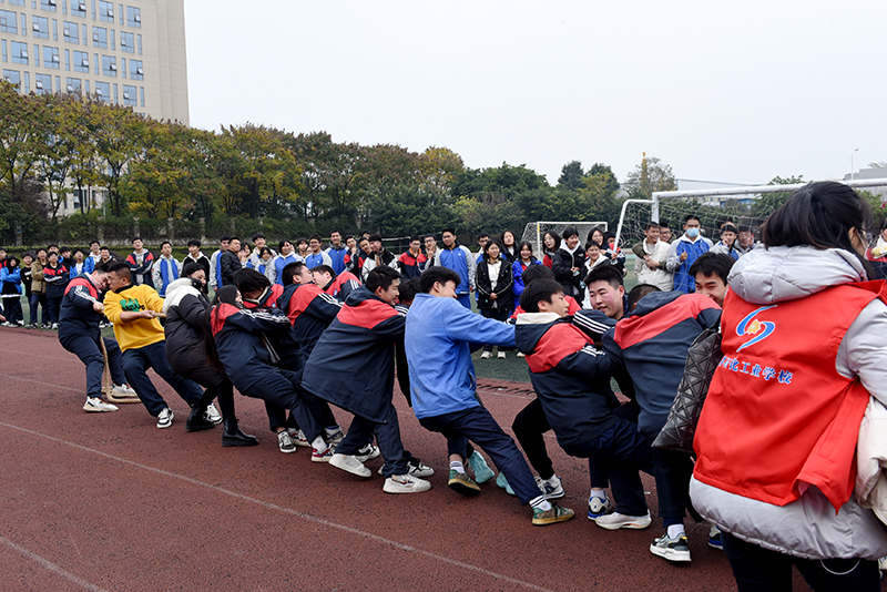 12月13日,成都石化工业学校电子科组织全科学生在运动场开展了班级拔河比赛。