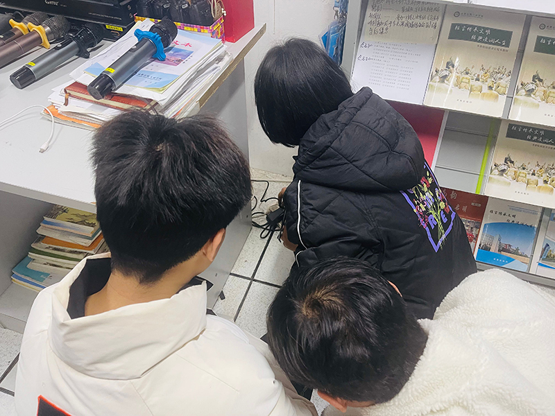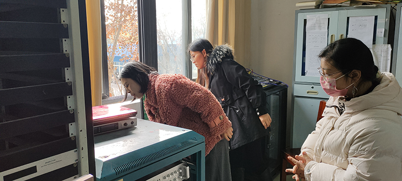 12月13日,我校广播站负责教师邓丽娟、杨博林带领广播站全体成员对广播室内线路以及设备进行安全隐患排查。