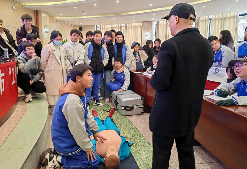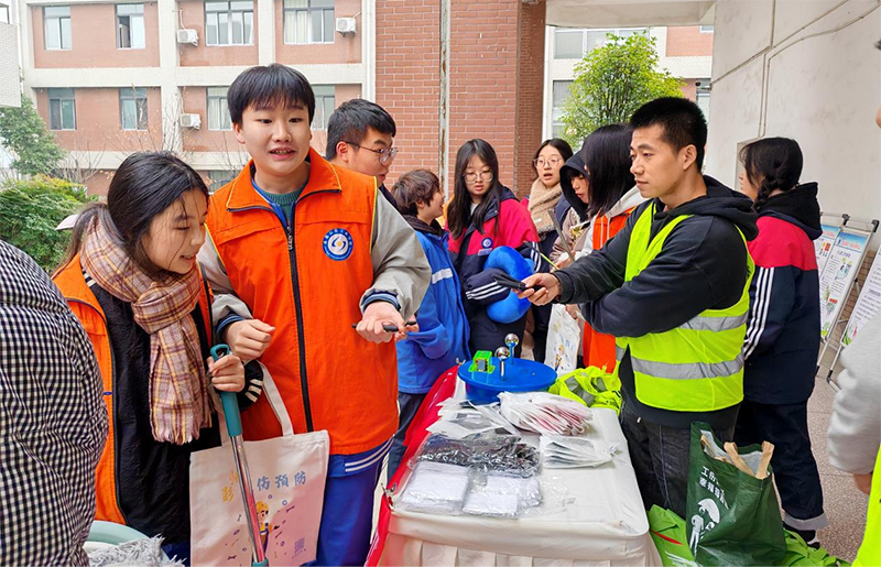 为促进理论知识与实践成果的相互转化,宣传活动现场还设置VR安全实景体验区、心肺复苏教学区、触电体验区、劳保用品展示穿戴区等模拟体验区,组织学生有序参与进来,身临其境感受工伤事故的危害性,进一步强化学生群体面对突发事件的自救互救和应急处置能力,从而有效预防日后工作岗位上各类事故的发生。