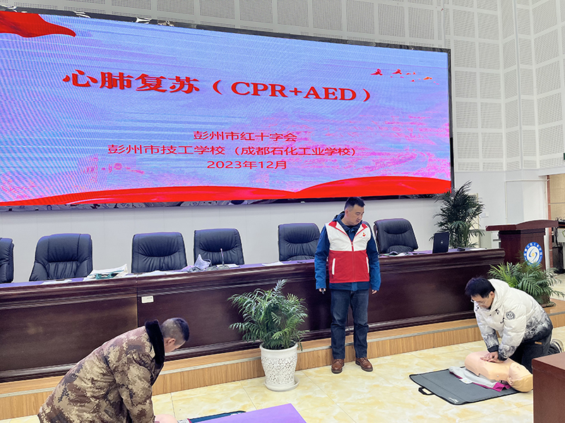 为提高岗位人员急救意识和技能,为校园安全保驾护航,12月21日,彭州市红十字会为我校教职工提供了一场生动实用的心肺复苏(CPR+AED)培训。