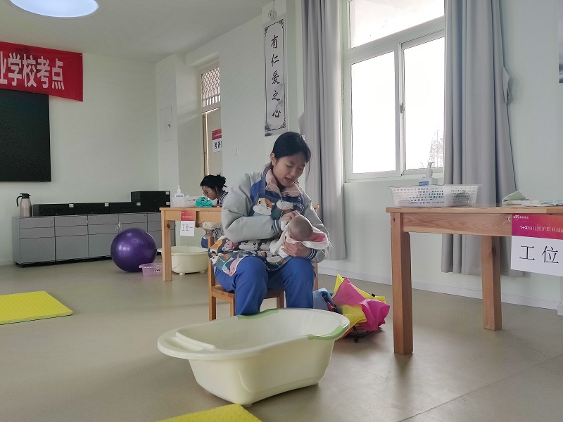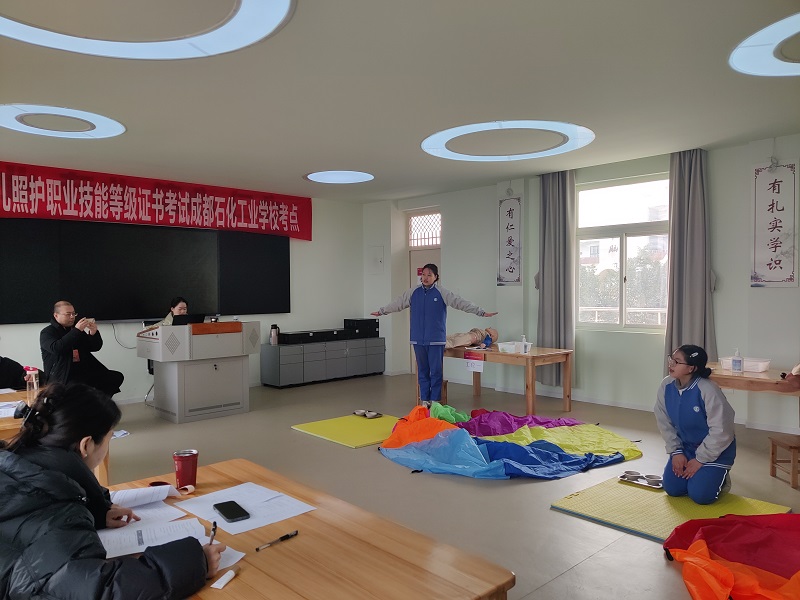 为了检验学生在幼儿照护领域的技能水平,12月23日,成都石化工业学校学前信息科组织了幼儿保育专业1+X幼儿照护职业技能等级考试。