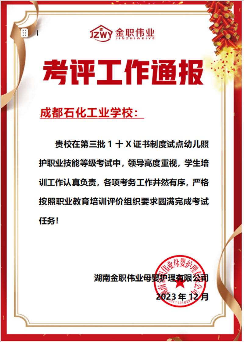 通过本次考试,成都石化工业学校将进一步推进幼儿保育专业“岗课赛证”融通,促进幼儿保育专业“岗课赛证”一体化设计、一体化实施、一体化综合育人模式改革,不断提升学生的专业素养,为高校和社会培养更多的高素质学前教育保育人才。
