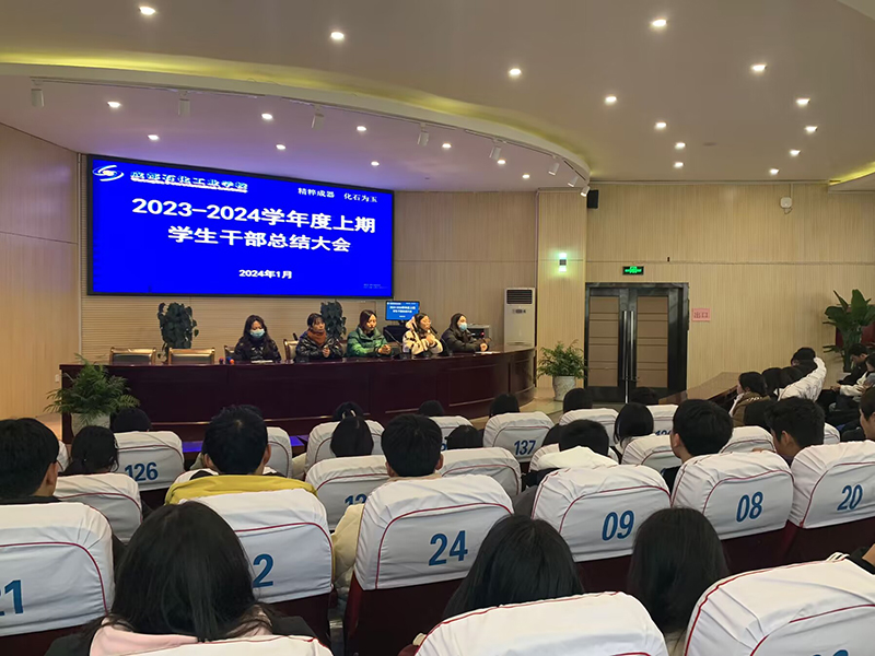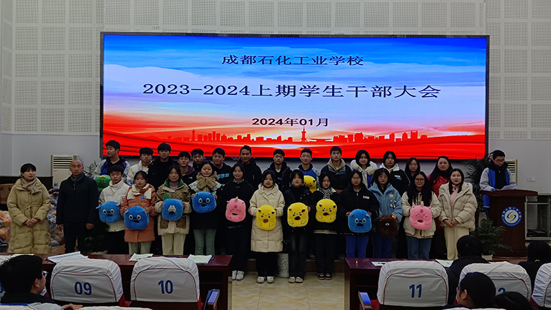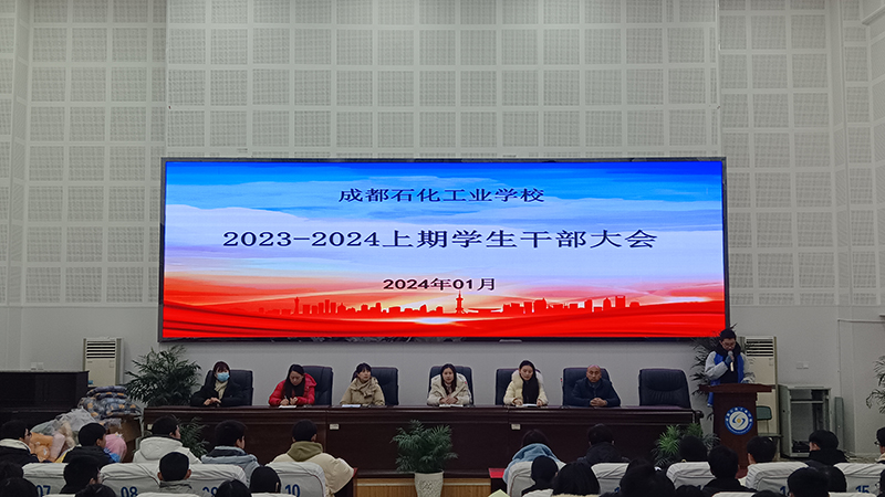 1月15日,成都石化工业学校分南、北校区召开了2023-2024学年度上期期末学生干部总结大会,总结本学期工作,表彰先进,提出下学期计划和要求。南北校区政教处负责人、校团委各部门老师及全体学生干部参加了会议。