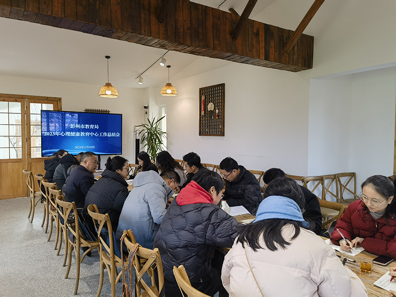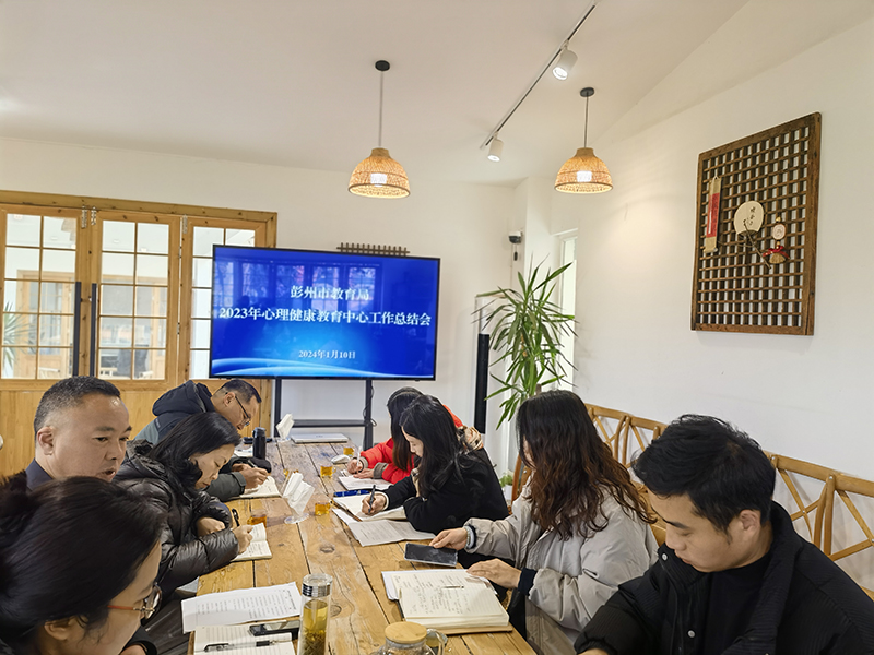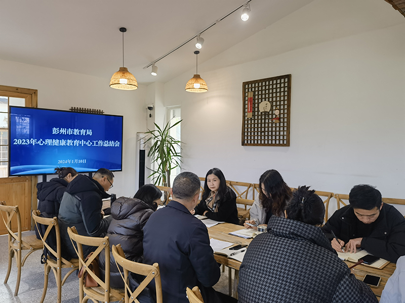 为全面总结 2023 年两级心理健康教育中心工作推进情况,谋划 2024 年两级心理健康教育中心工作,助力学校心理健康服务工作水平提升,1月10日,彭州市2023年心理健康教育中心工作总结会如期召开。彭州市教育局德育科科长王海蓉,彭州市教育局机关妇委会主任巫吉蓉、彭州市教育研究培训中心王涛斌主任及两级心理健康教育中心相关负责人、心理咨询团队部分成员参会,会议由巫吉蓉主任主持。