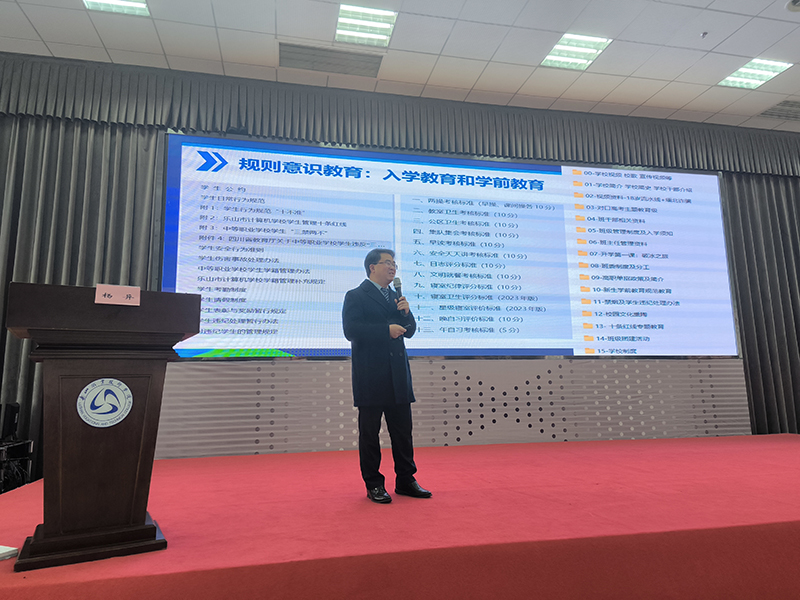 17日,成都石化工业学校举行了此次培训开班仪式,强调了培训注意事项和纪律。18日至20日,在乐山职业技术学院学术厅,乐山市第一职业高级中学校长何晓明受邀做《中高职衔接与专业建设》专题报告,从培养模式、教学思想、教学德育模式、成果等方面分享了该校的德育工作经验,并重点从三通——“中高职贯通、岗课赛证贯通、产学研联通”及六共——“专业共办、人才共育、基地共建、师资共培、资源共通信息共用”介绍具体做法;乐山市惠德综合高级中学德育主任杨异以《立德树人建体系,百年育人树品牌》为题,分享了该校纵向贯通、横向融通、四级递进协同构架学生发展立交桥的人才培养模式;乐山市惠德综合高级中学校长胡飞扬做了题为《培才强技兴家园,求真务实筑匠魂》的专题报告,从寻根定向,凝练文化;多元载体,塑造文化;成果丰硕,彰显文化;薪火相传,弘扬文化等四个方面分享了该校推进内涵建设、文化立身、持续发展的经验;双流建设职业技术学校校长周小研以《新时代中职班主任核心素养体系构建及提升策略》为题,从基于中职德育立场对“新时代”理解、新时代中职班主任核心素养体系构建、新时代中职班主任核心素养提升策略等三个方面指出新时代的中职班主任应该“有高度、有宽度、有温度”,班主任工作源于看法、始于想法、行于办法、成于做法。几位专家通过丰富精彩的案例、准确详实的数据统计、内涵深刻的视频图像,深入浅出地分享了德育工作的思路、脉络和技巧。成都石化工业学校德育工作团队认真做好笔记,不时发出阵阵热烈掌声。