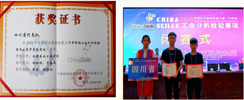 2019年6月1日,代表四川省参赛的成都石化工业学校2017级化学工艺1班胡加明和弓俊杰喜获全国职业院校技能大赛“ 工业分析检验赛项”三等奖,实现我校在全国职业院校技能大赛中获奖零的突破。