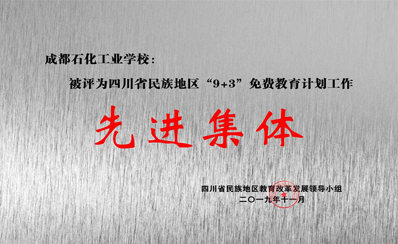 2.2019年,我校被评为《四川省民族地区“9+3”免费教育计划工作先进集体》,为促进民族地区脱贫攻坚、决战全面小康,实现各民族共同繁荣进步贡献了职业教育人的力量。