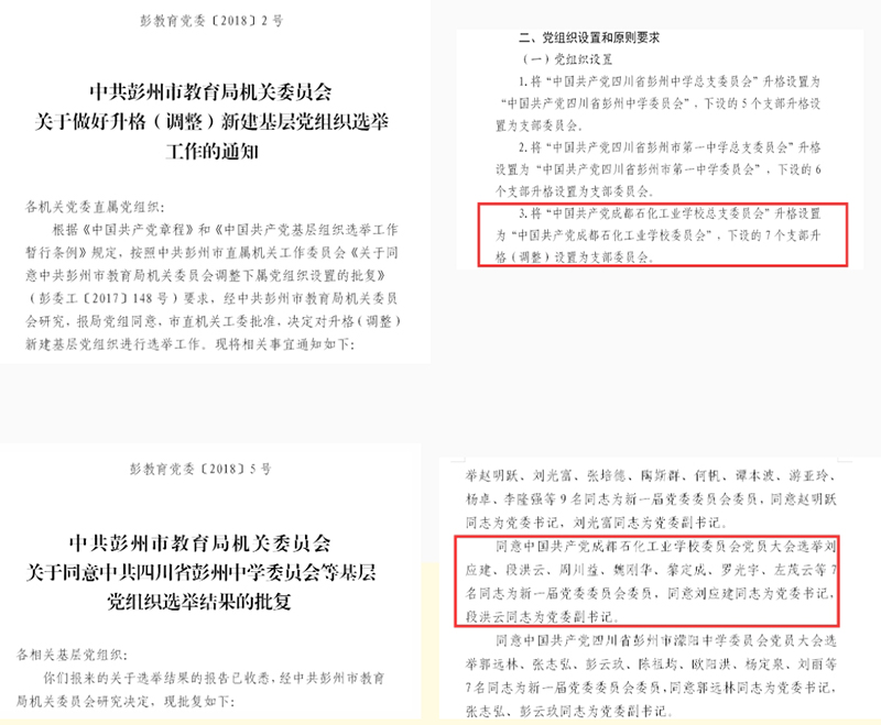 2.2018年,中国共产党成都石化工业学校总支部委员会升格为中国共产党成都石化工业学校委员会。